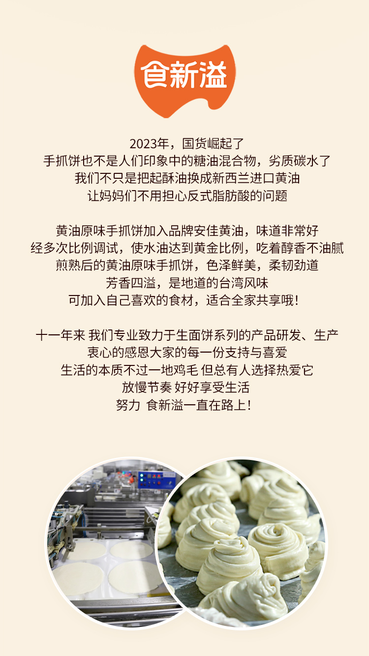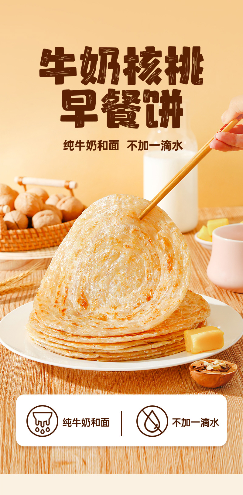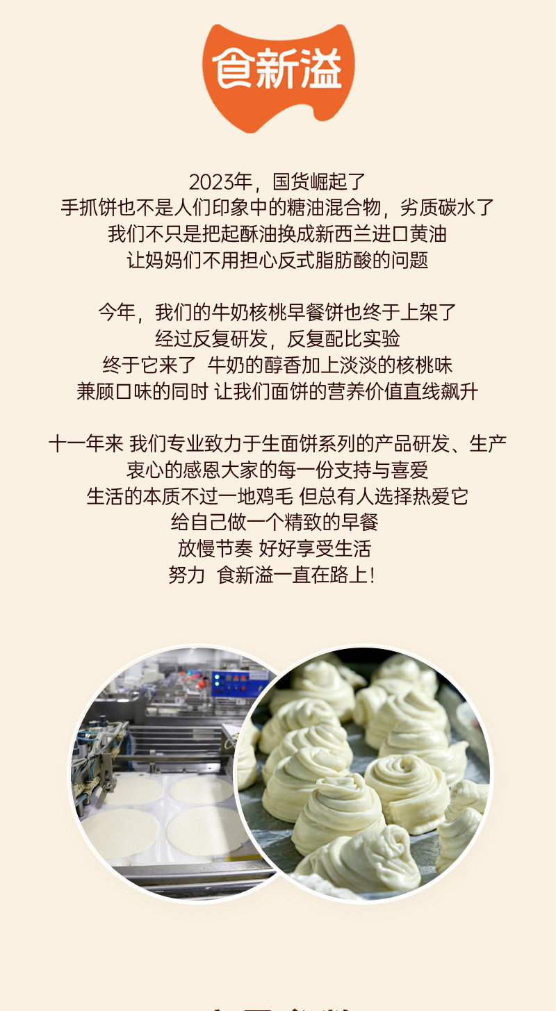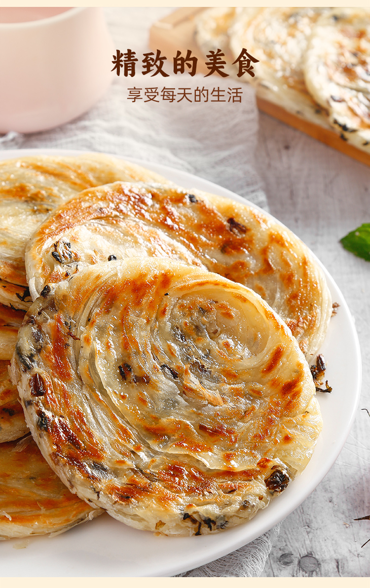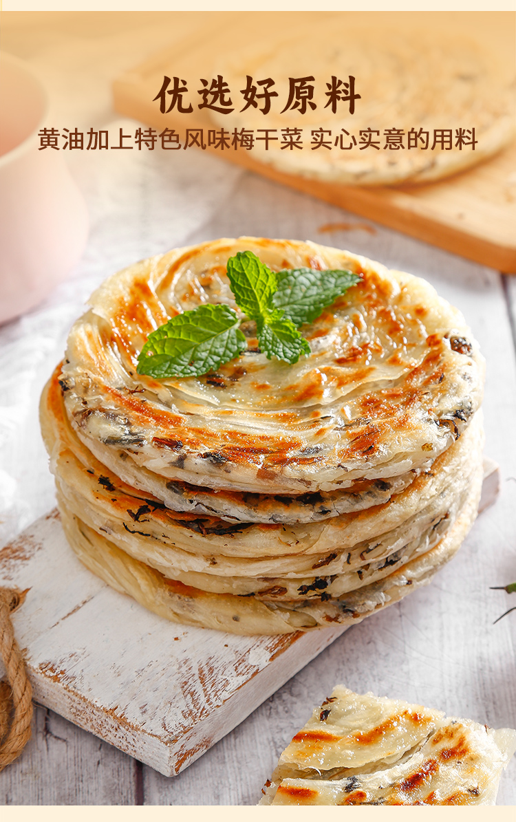 食新溢 黄油原味手抓饼1kg(100gx10)/牛奶核桃早餐饼1kg(100gx10)/黄油葱油饼500g(100gx5)/黄油梅干菜饼500g(100gx5)