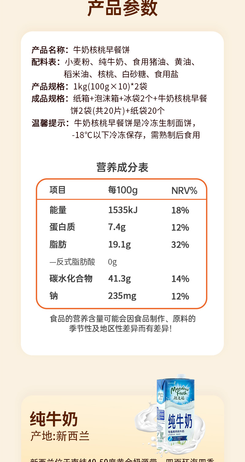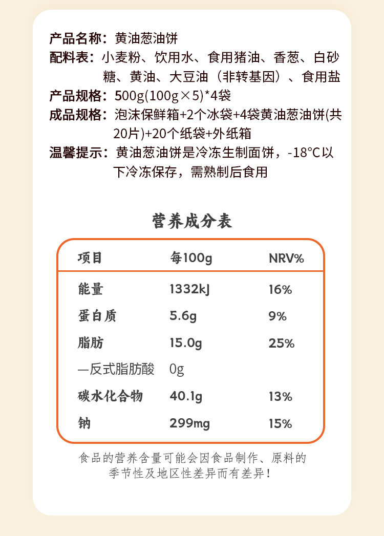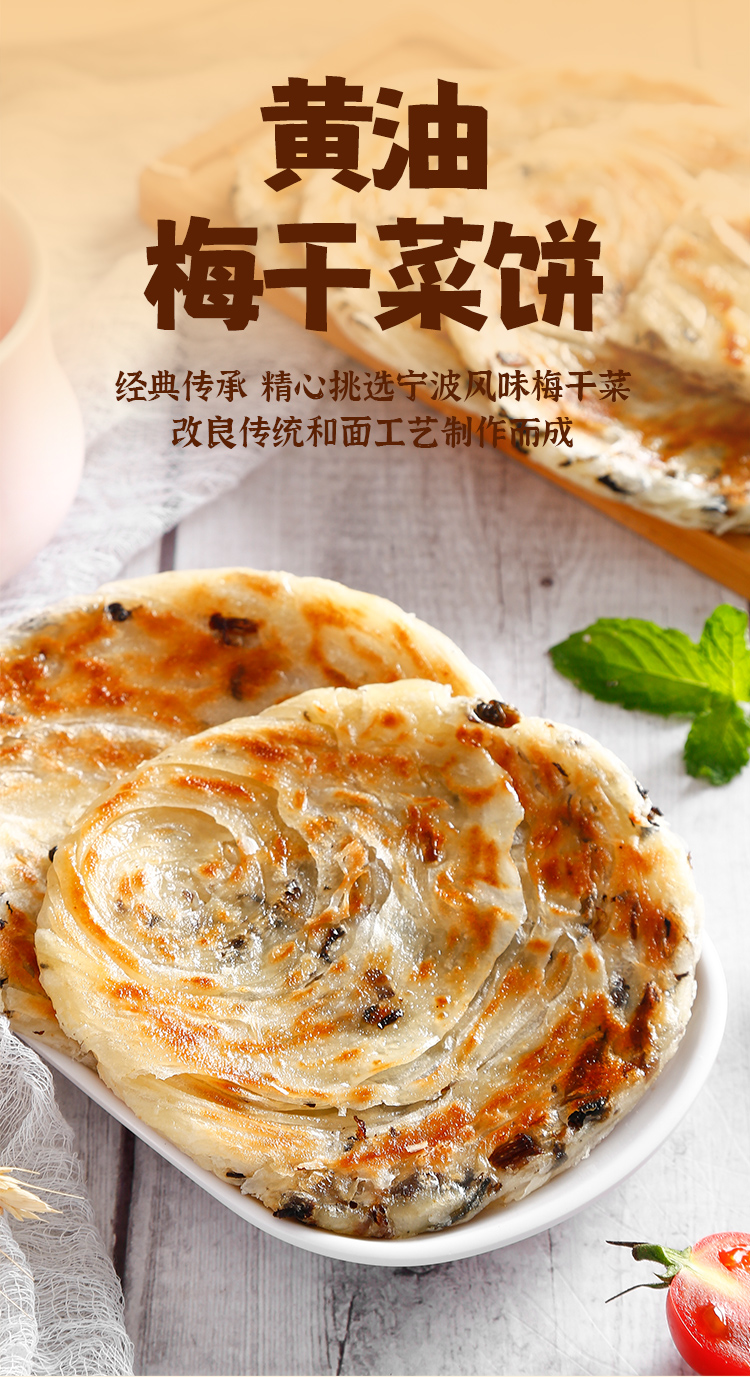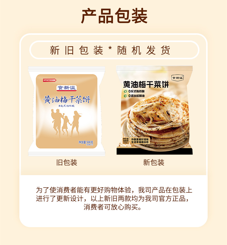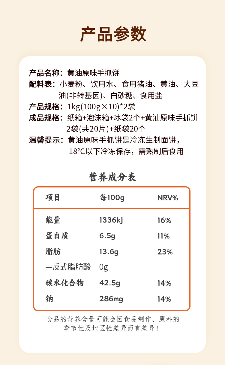 食新溢 黄油原味手抓饼1kg(100gx10)/牛奶核桃早餐饼1kg(100gx10)/黄油葱油饼500g(100gx5)/黄油梅干菜饼500g(100gx5)