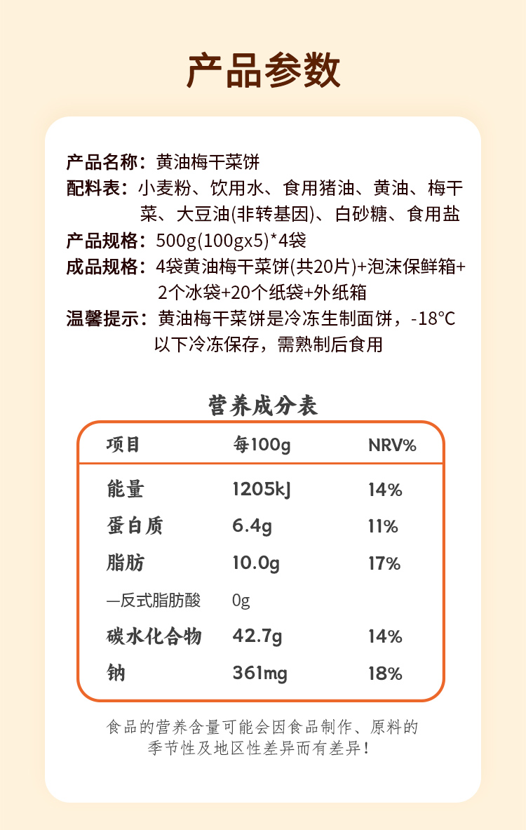 生产日期:黄油原味2.19/3.28 黄油葱油饼2.27/5.7/5.9 黄油梅干菜饼2.22/5.10牛奶核桃早餐饼11.24