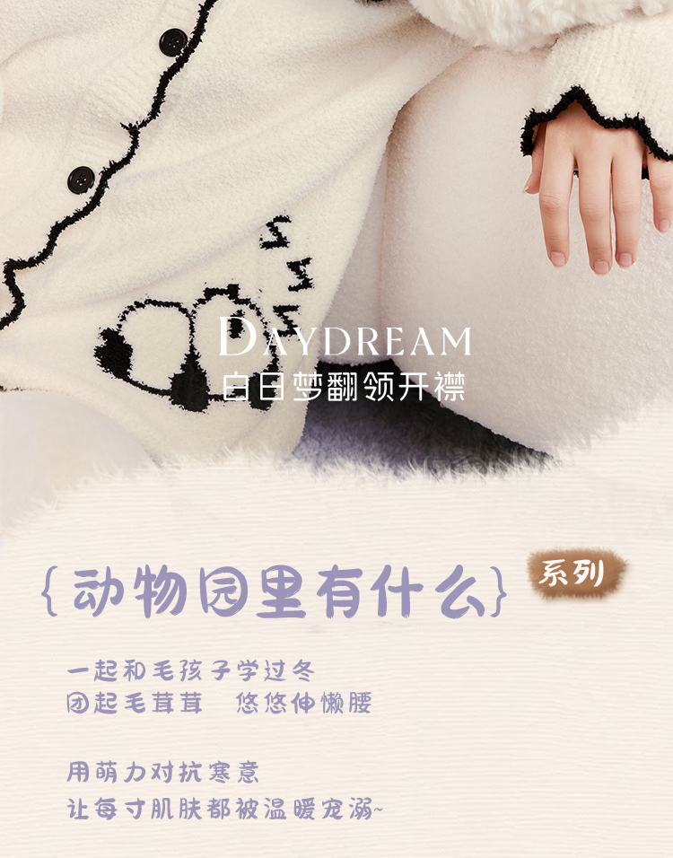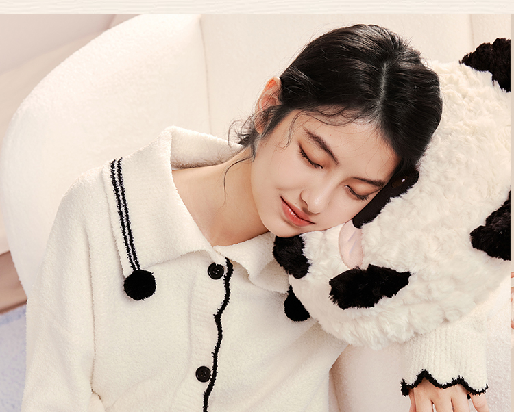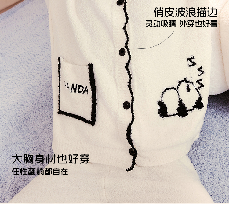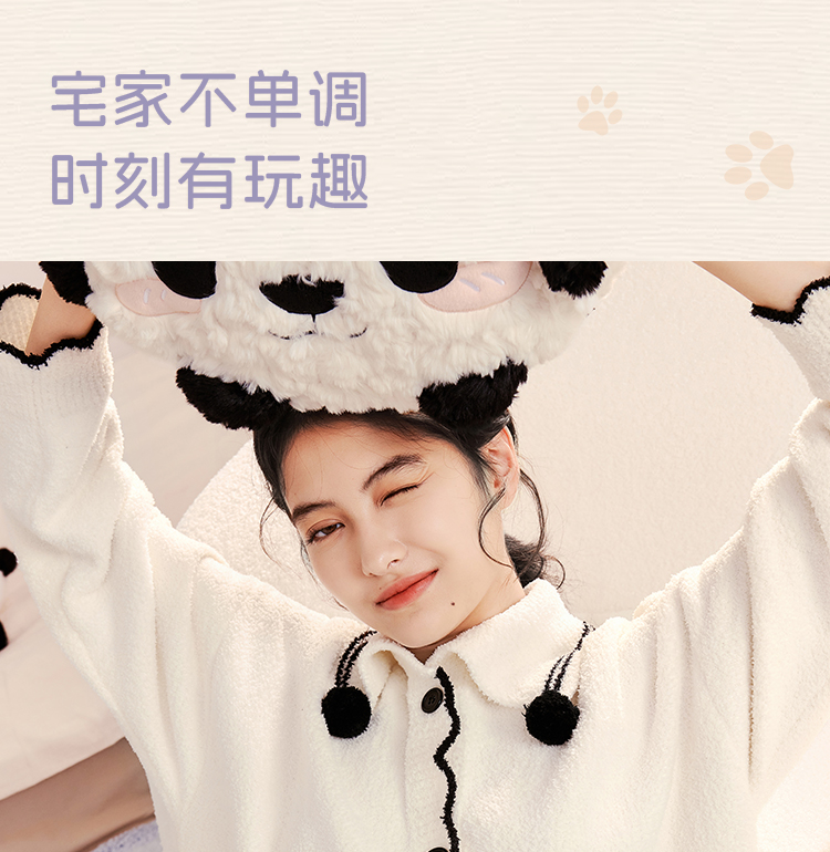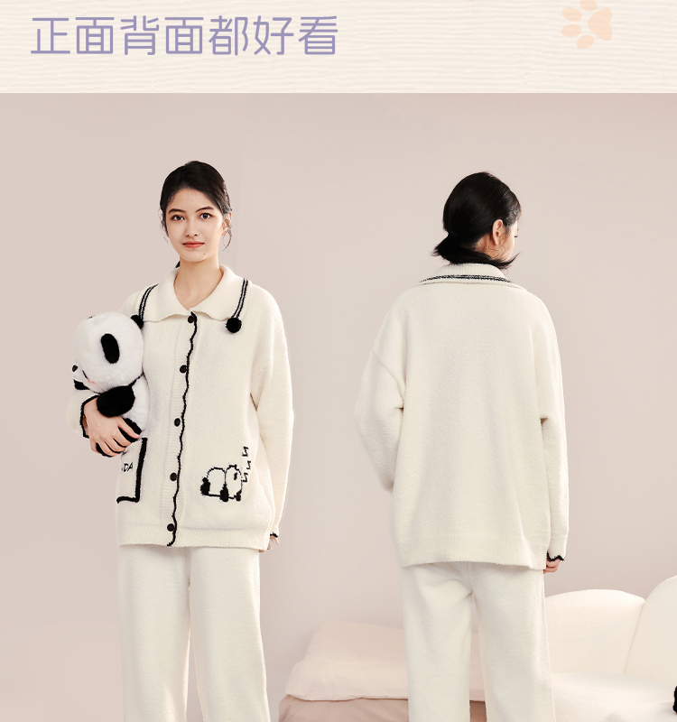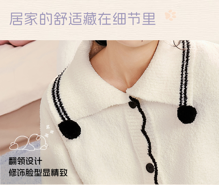 奶糖派白日梦领半边绒保暖睡衣女翻领开襟套装秋冬加厚抗静电家居服