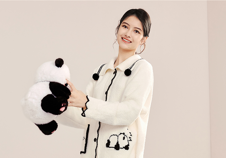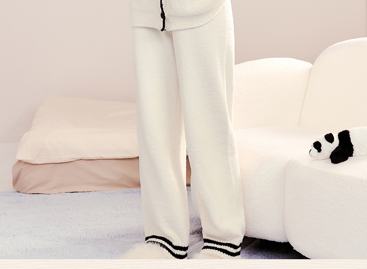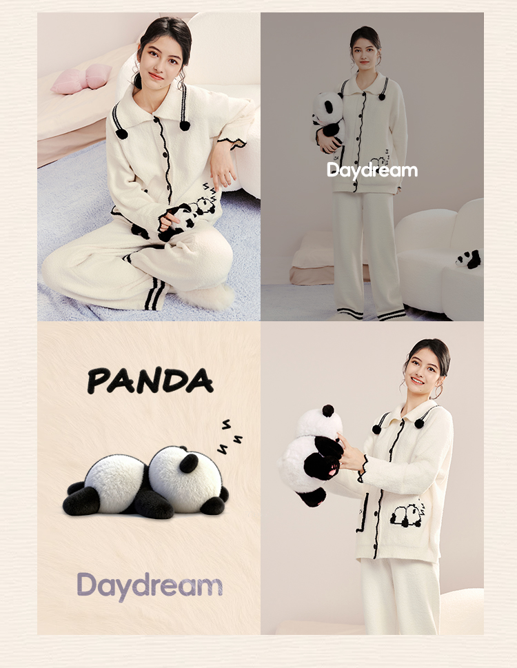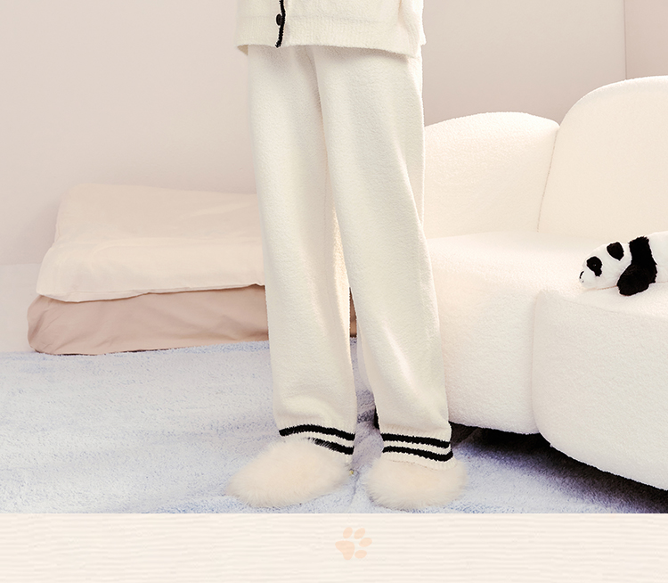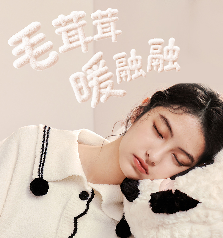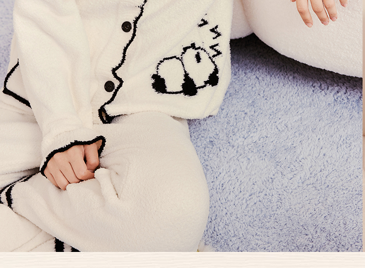 奶糖派白日梦领半边绒保暖睡衣女翻领开襟套装秋冬加厚抗静电家居服