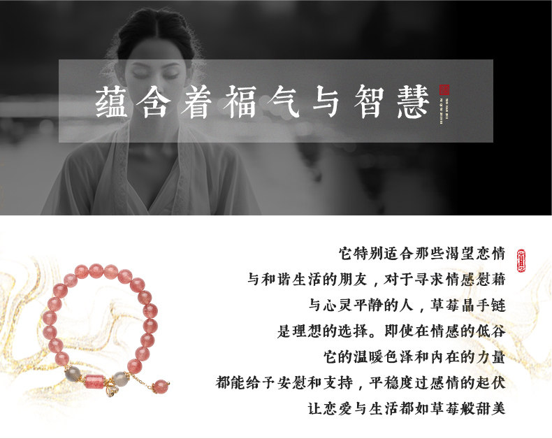 【祈愿吉品】水晶草莓晶手链爱心吊坠
