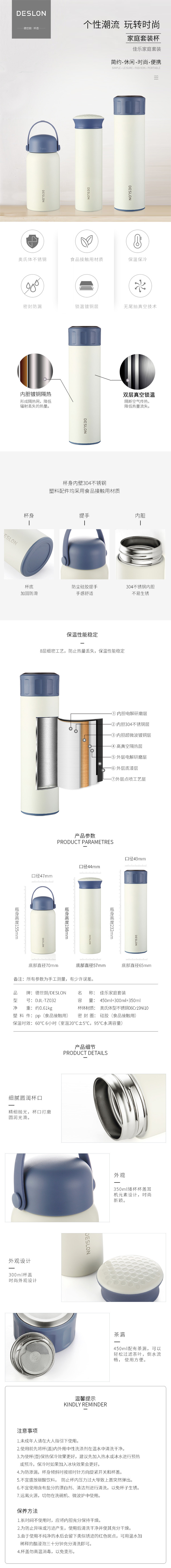 DESLON德世朗 佳乐 家庭杯壶套装 便携式保温杯 3件装