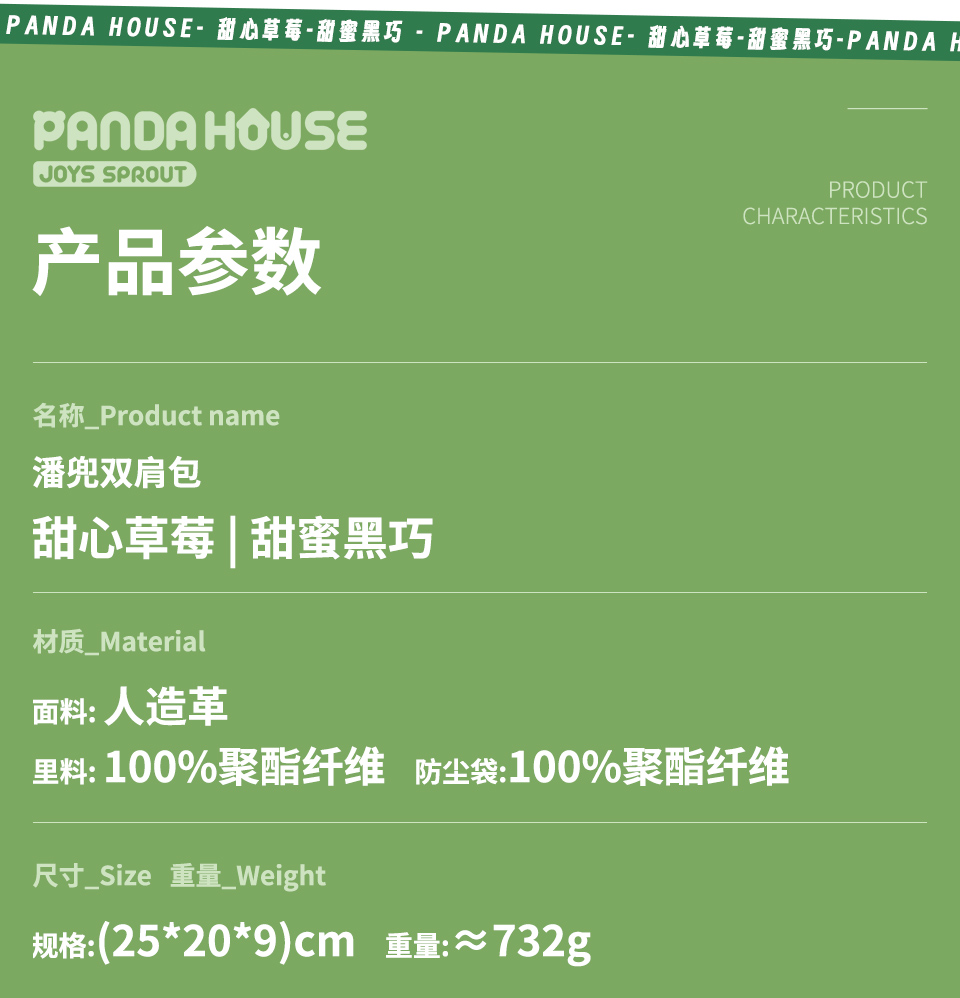 熊猫屋PANDAHOUSE 潘兜双肩包-甜蜜黑巧/甜心草莓 儿童款 送纸袋