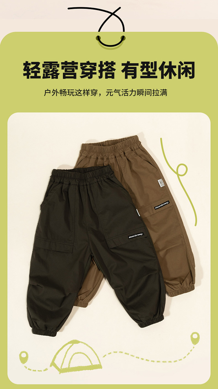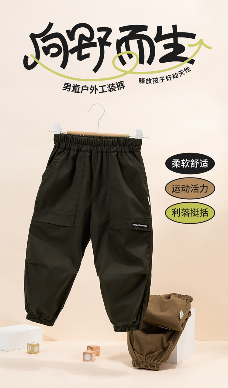 贝贝怡24秋季新款男童工装裤中大童户外休闲学生束脚裤ZB3DK031