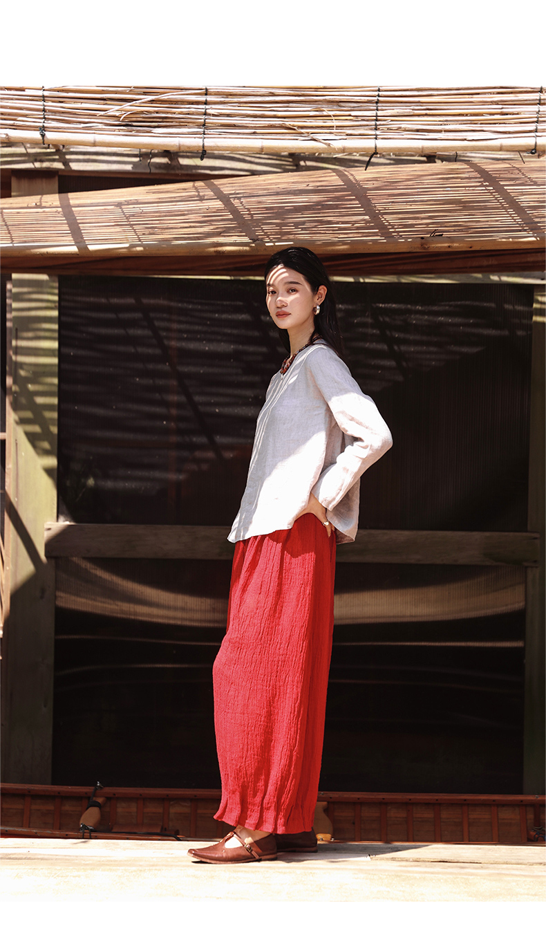 以天然亚麻为载体,融合热烈色彩与自在剪裁为身在城市、心怀远方的女性提供兼具美学与舒适的旅行着装
