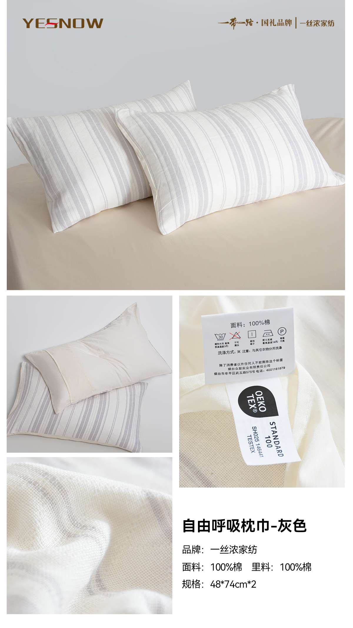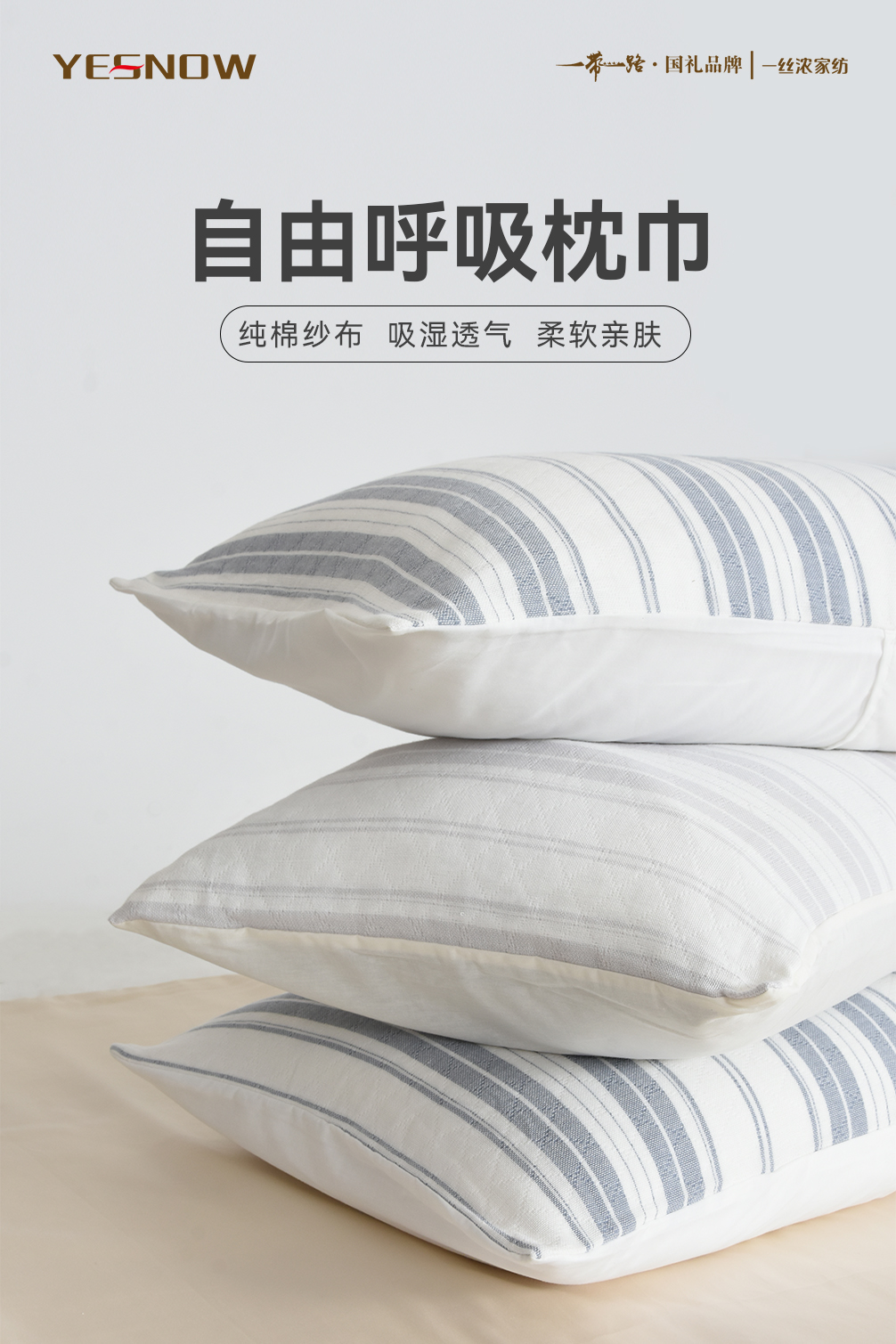 自由呼吸枕巾 纯棉三层纱布枕巾