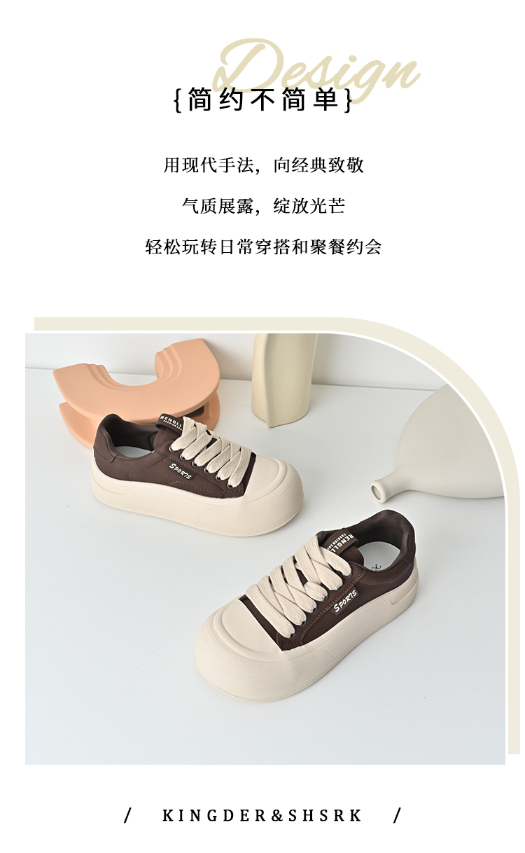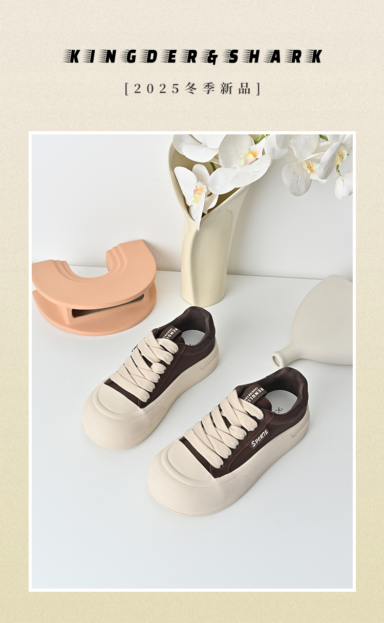 经典鲨2025年秋季专柜新款百搭圆头厚底系带休闲鞋面包鞋女KW316-537091
