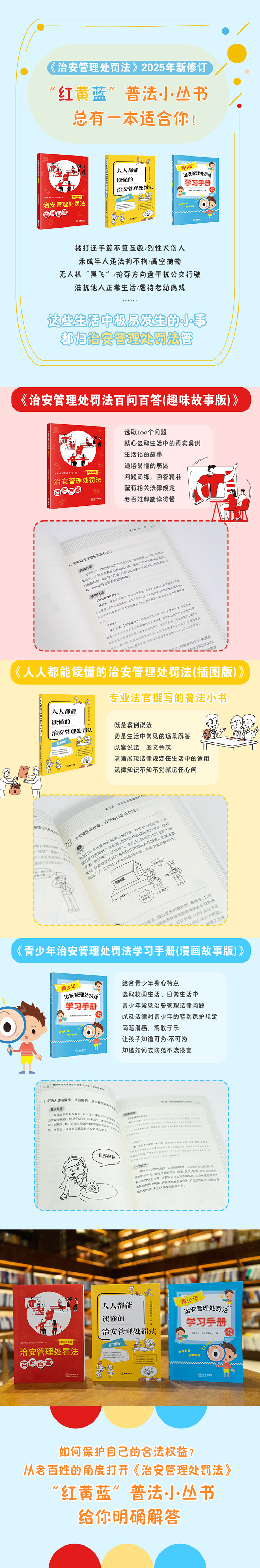 青少年学好、用好《治安管理处罚法》,不仅有利于其保护自身合法权益,而且有助于减少违法行为、维护社会稳定。为了给广大青少年学习《治安管理处罚法》提供好读、实用的普法读物,我们组织编写了这本《青少年治安管理处罚法学习手册(漫画故事版)》。本书结合青少年的身心特点,选取常见治安管理法律问题、特别程序和应知应会知识,采用图文并茂的形式,寓教于乐。