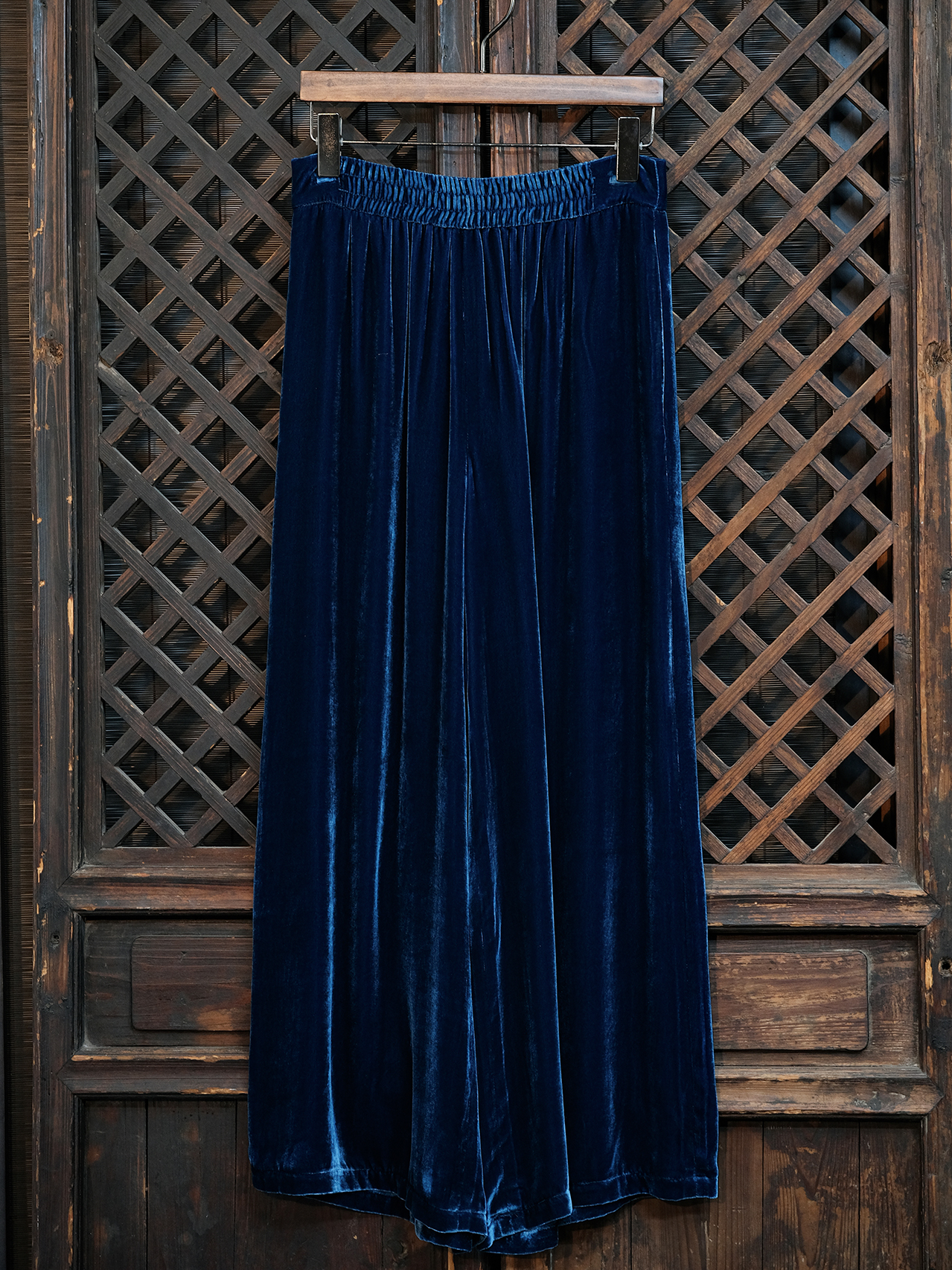 盛唐婧 |新中式丝绒阔腿裤-蓝色