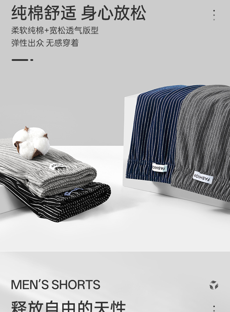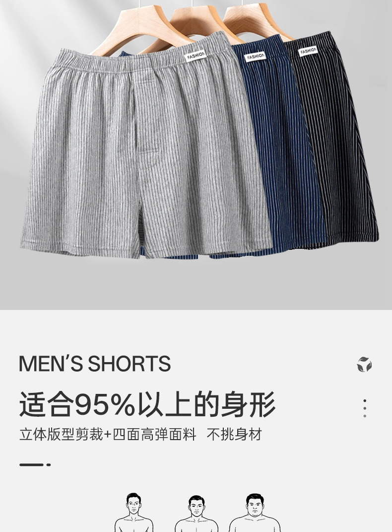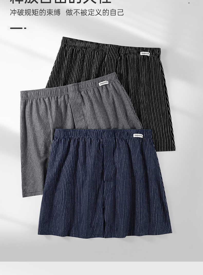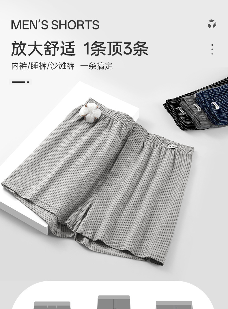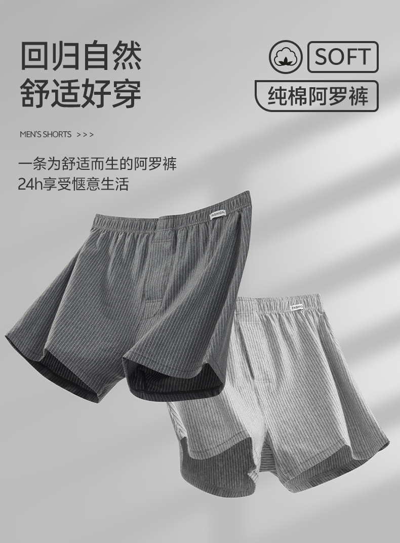 【99到手4件❗️纯棉条纹阿罗内裤】甄选品质原料,一件顶3件❗️休闲/睡裤/内裤,家居全棉阿罗裤全棉大码中腰内裤男L