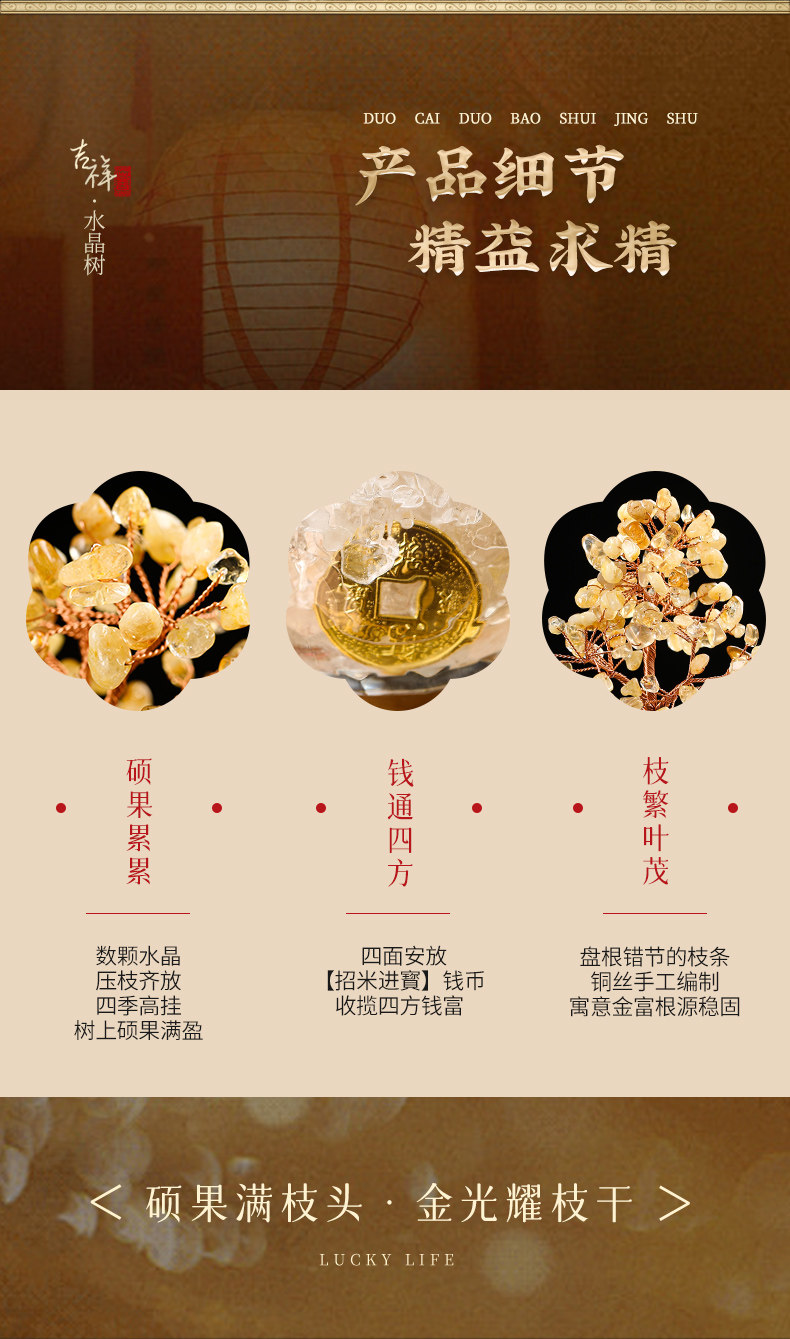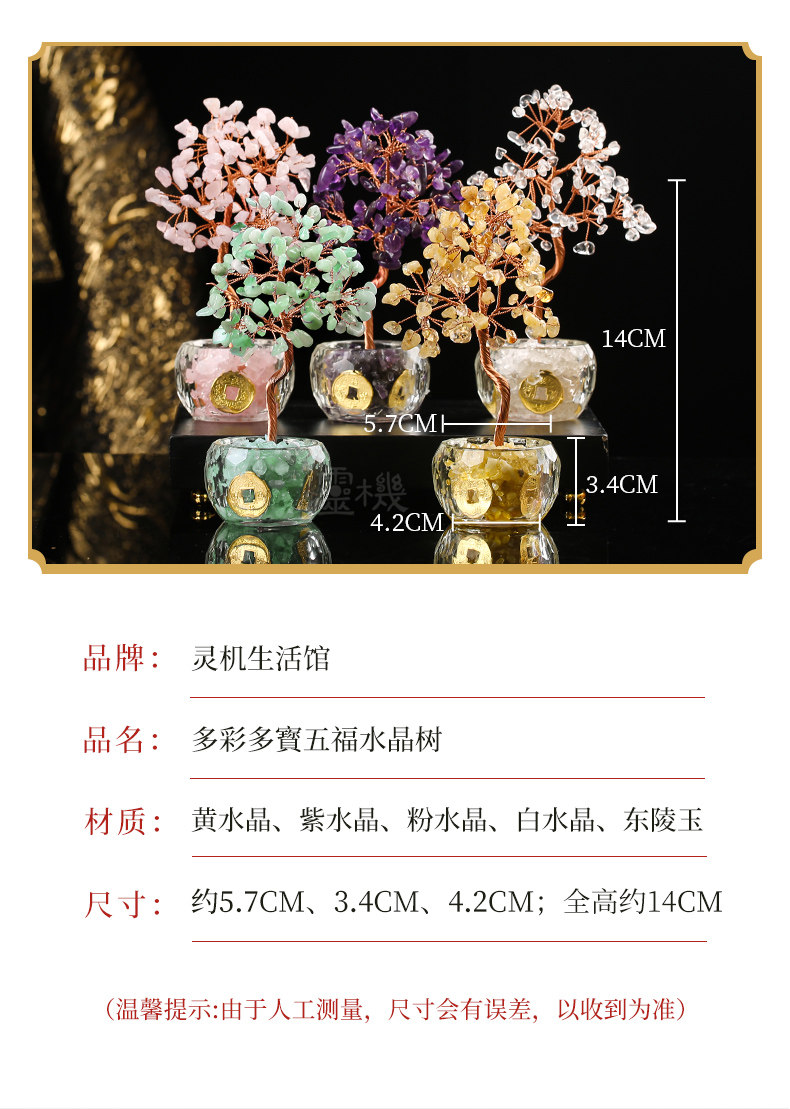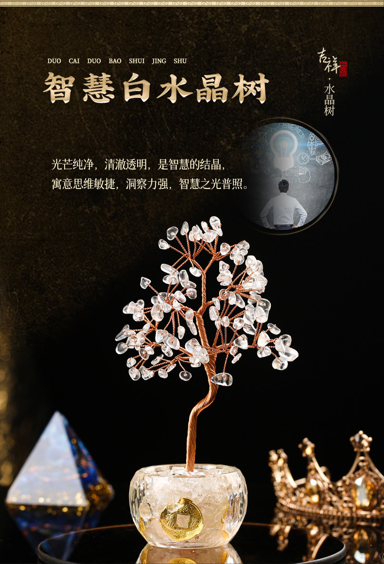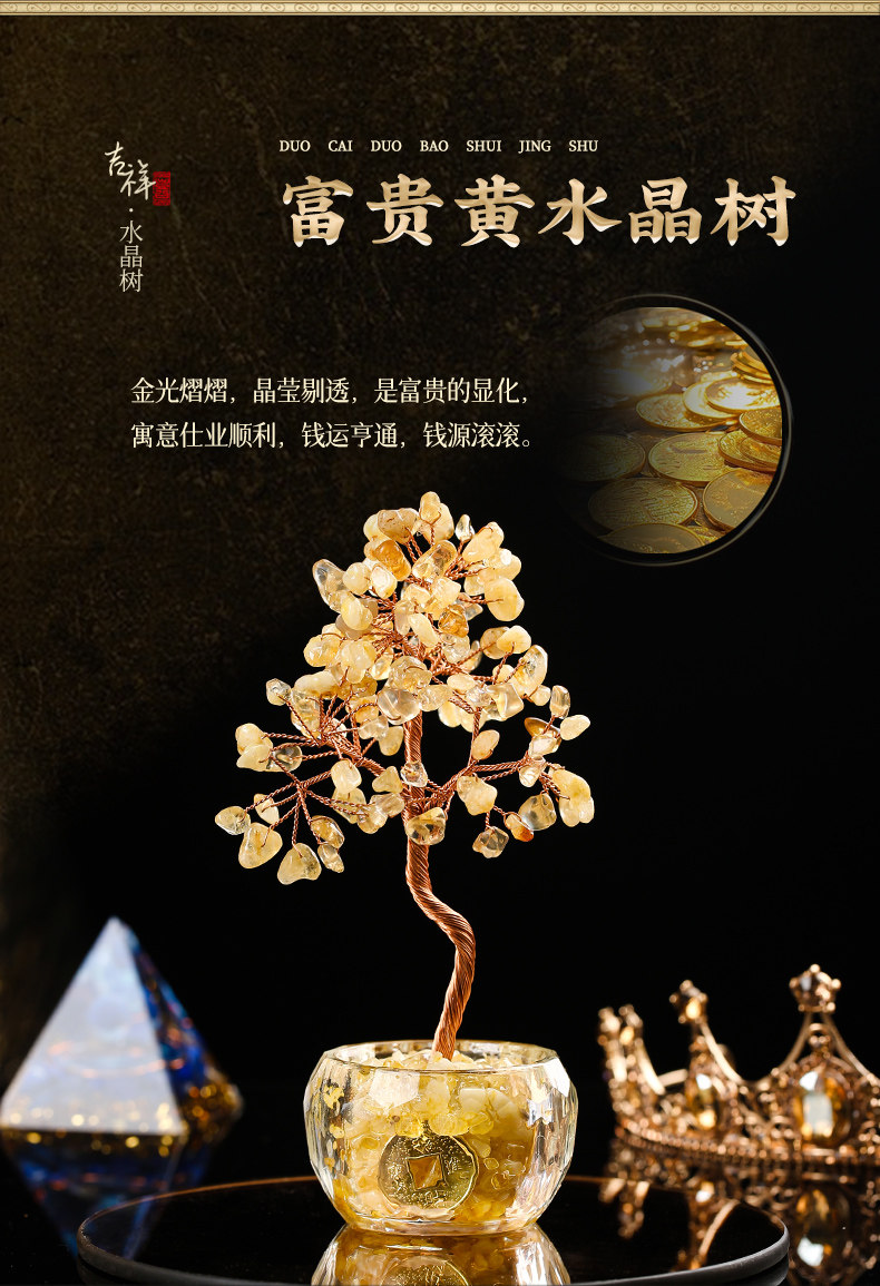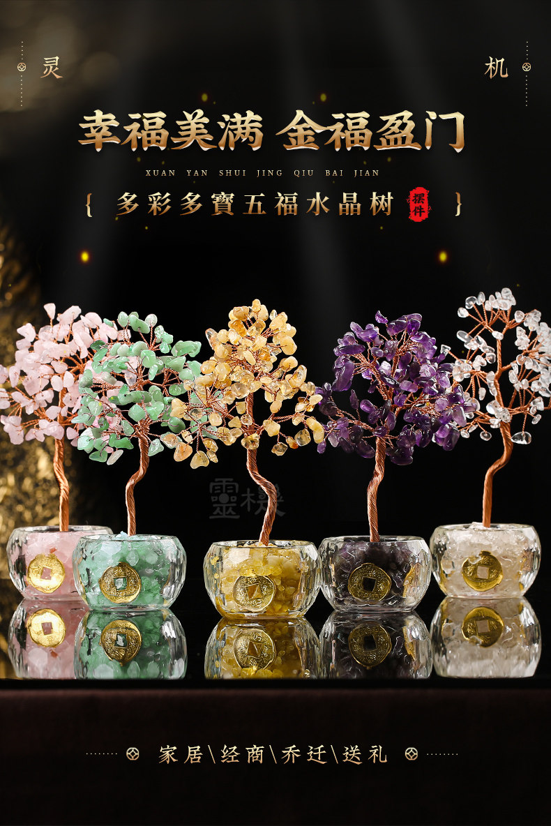 【祈愿吉品】2026马年多彩多福水晶树吉祥财神办公摆件