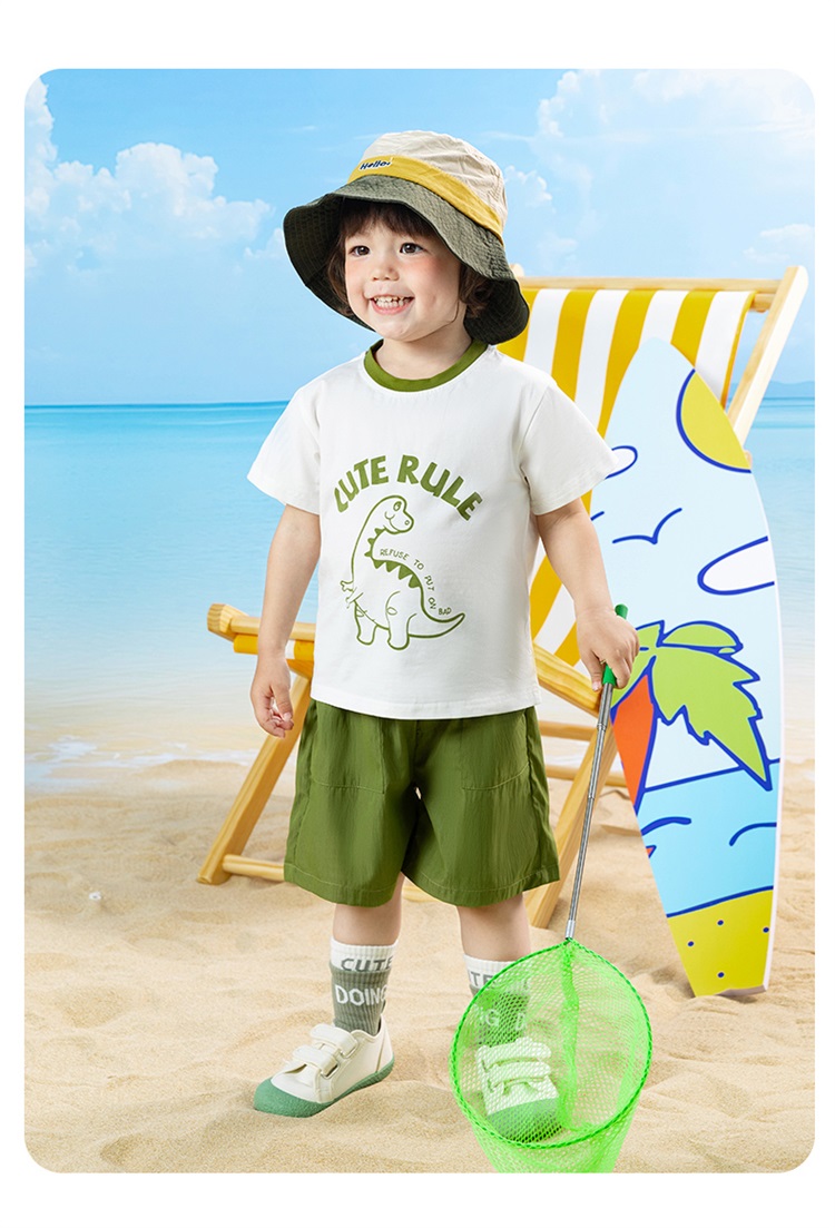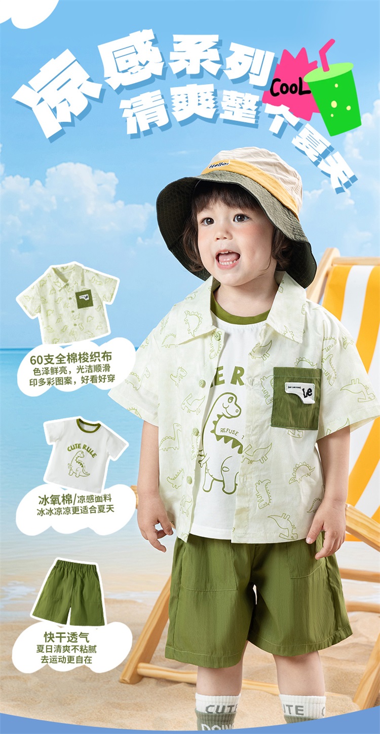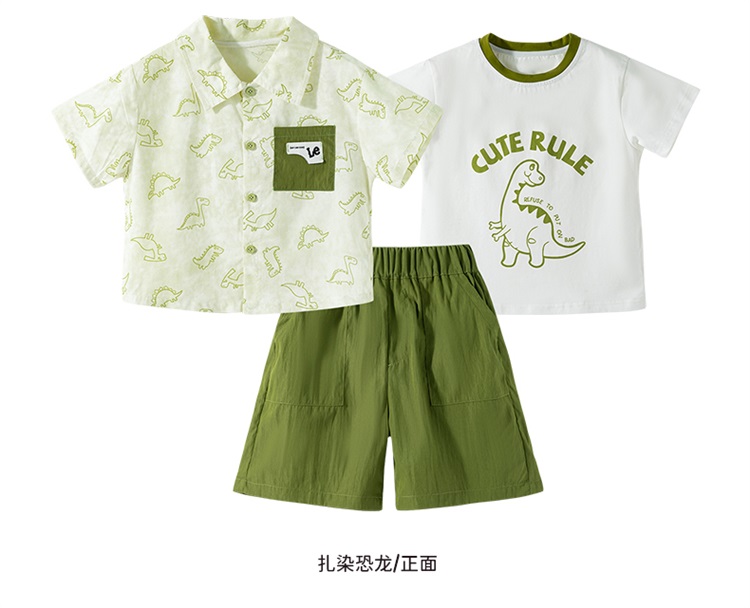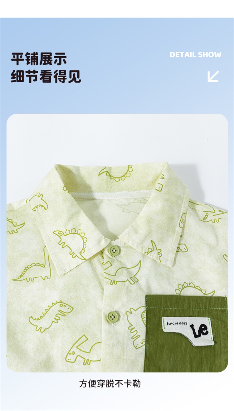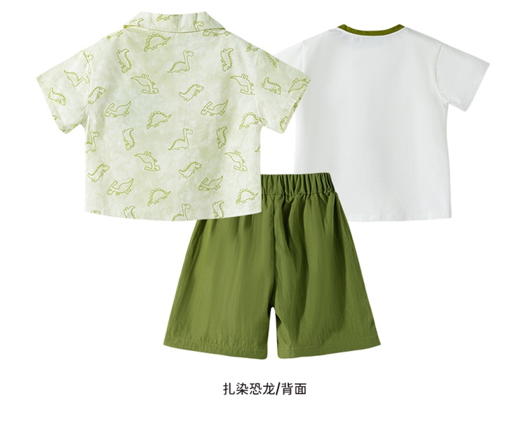 贝贝怡【满印恐龙三件套】2025夏季新款男童清凉透气衬衫T恤短裤三件套ZB2ET054
