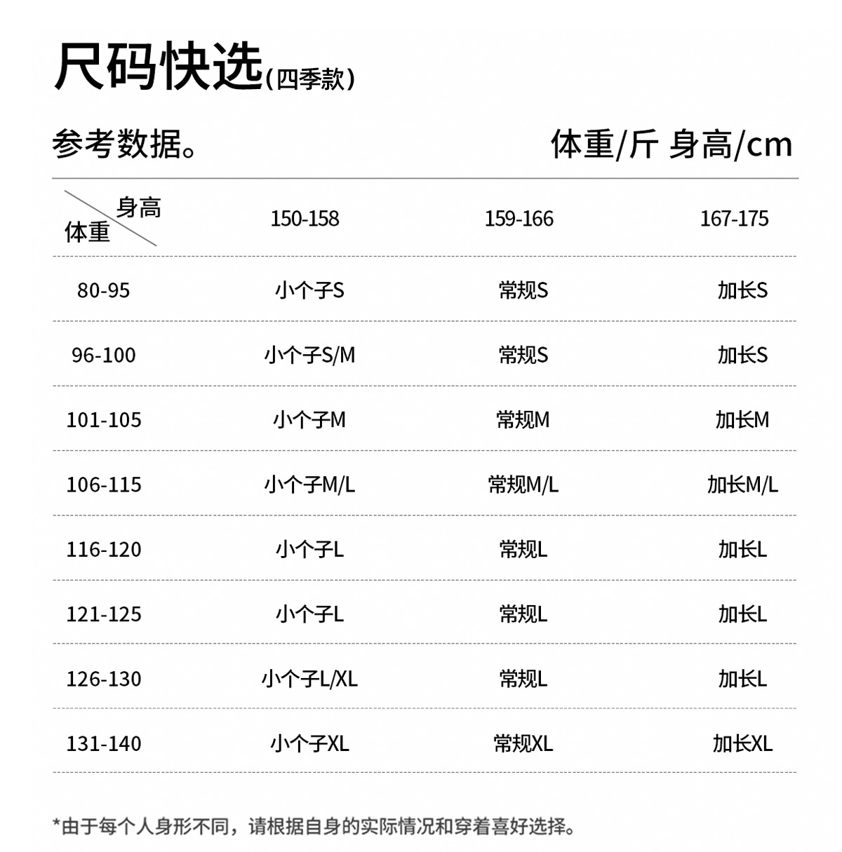 规格:小个子款 常规款 加长款