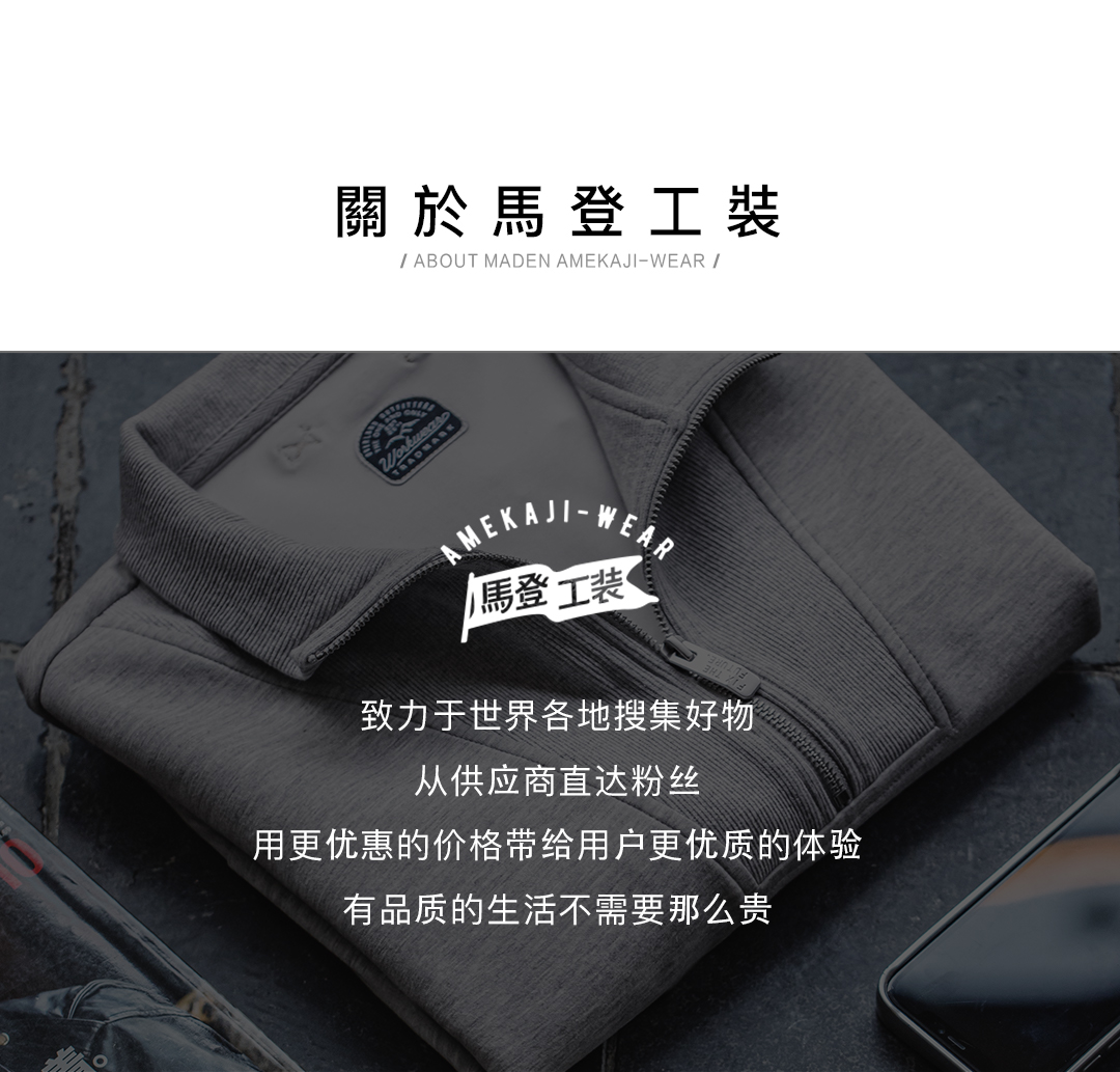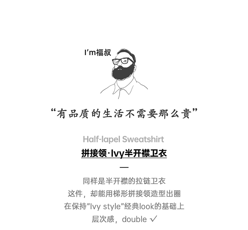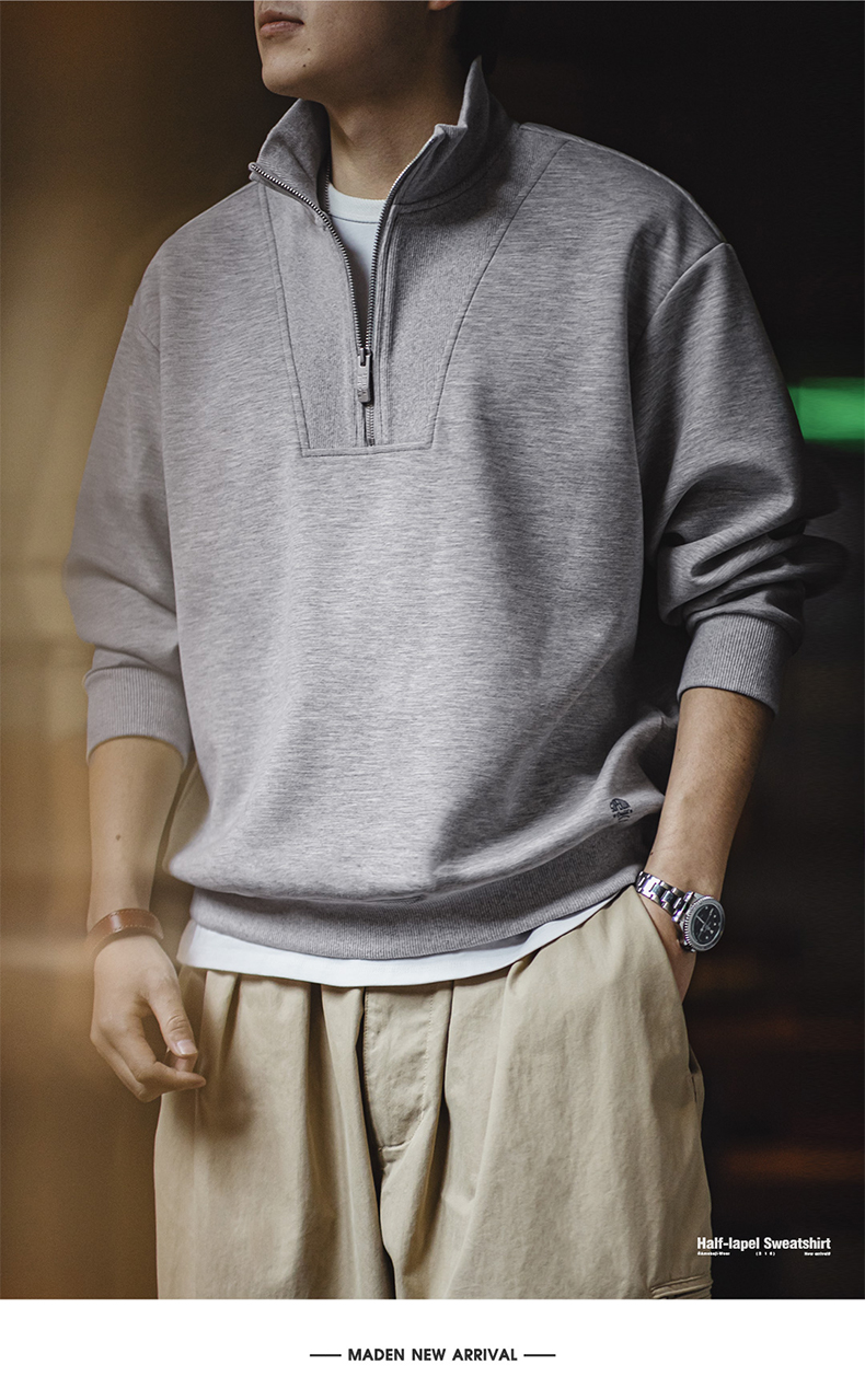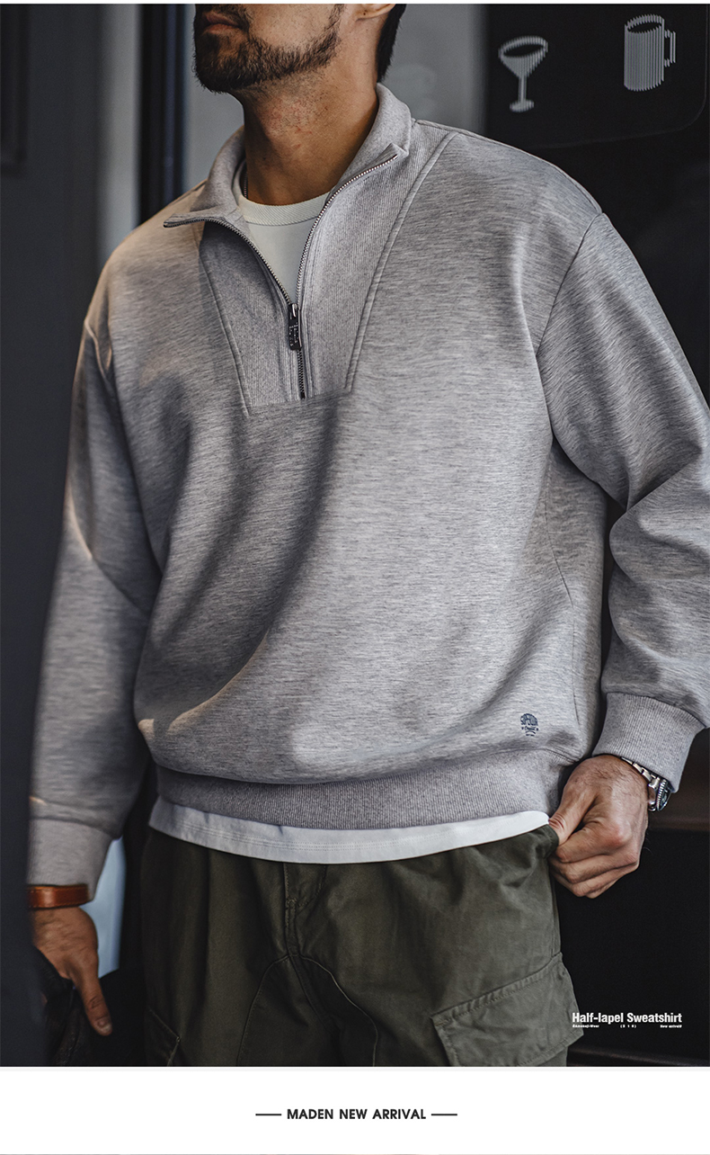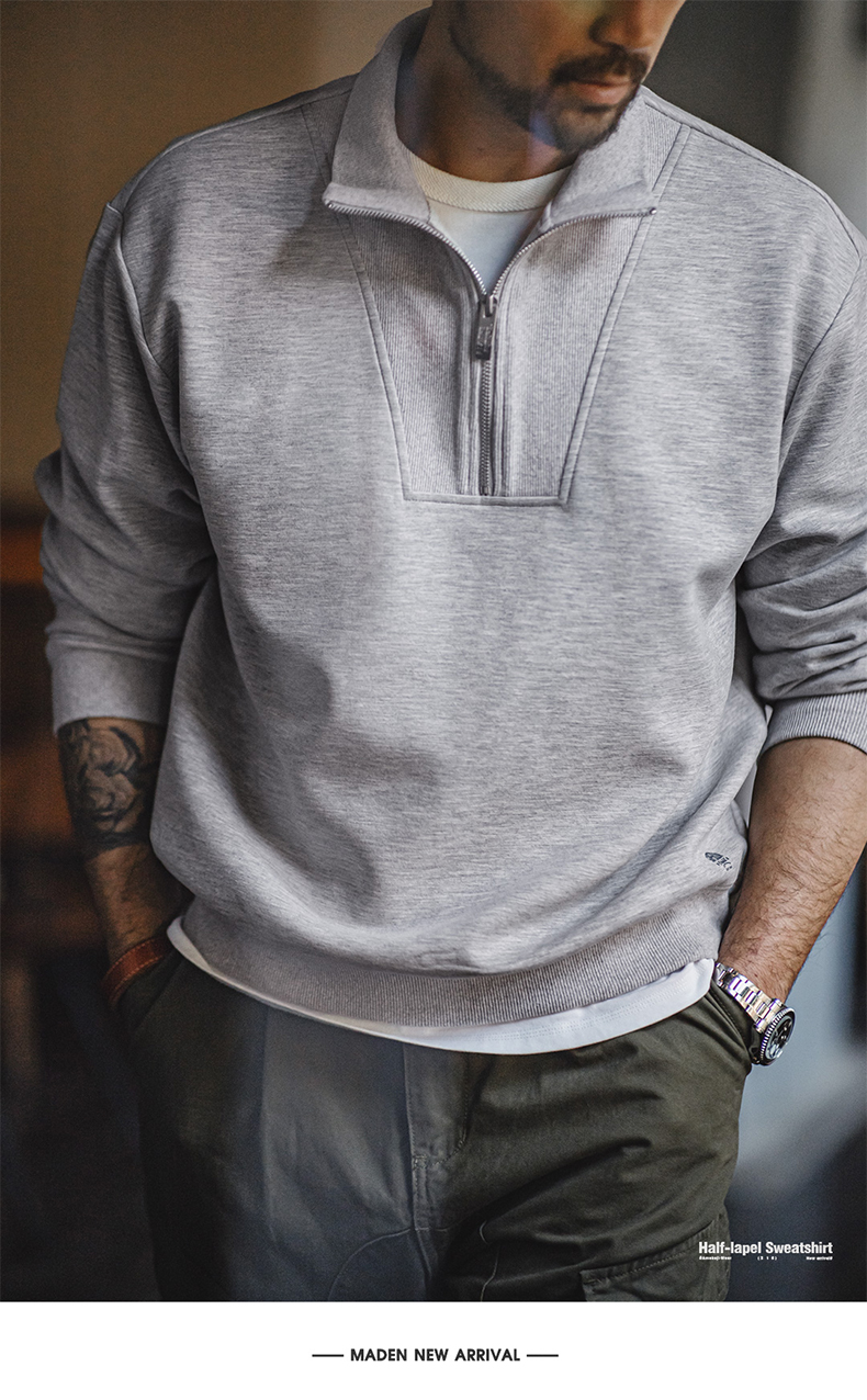 工装优选美式休闲空气层半拉链卫衣学院风灰色拼接立领上衣男春秋