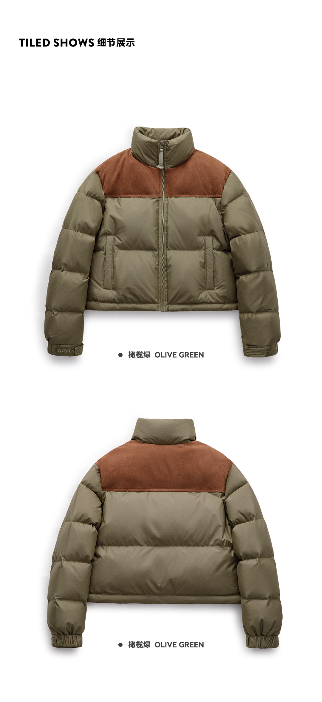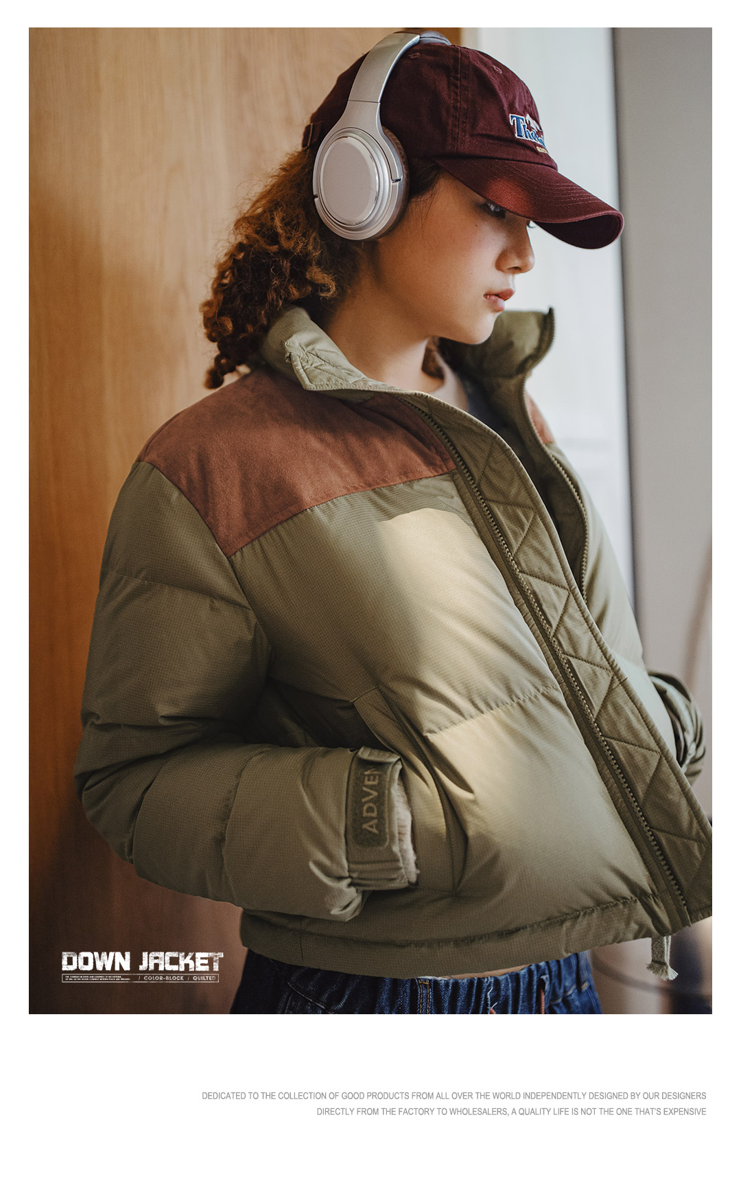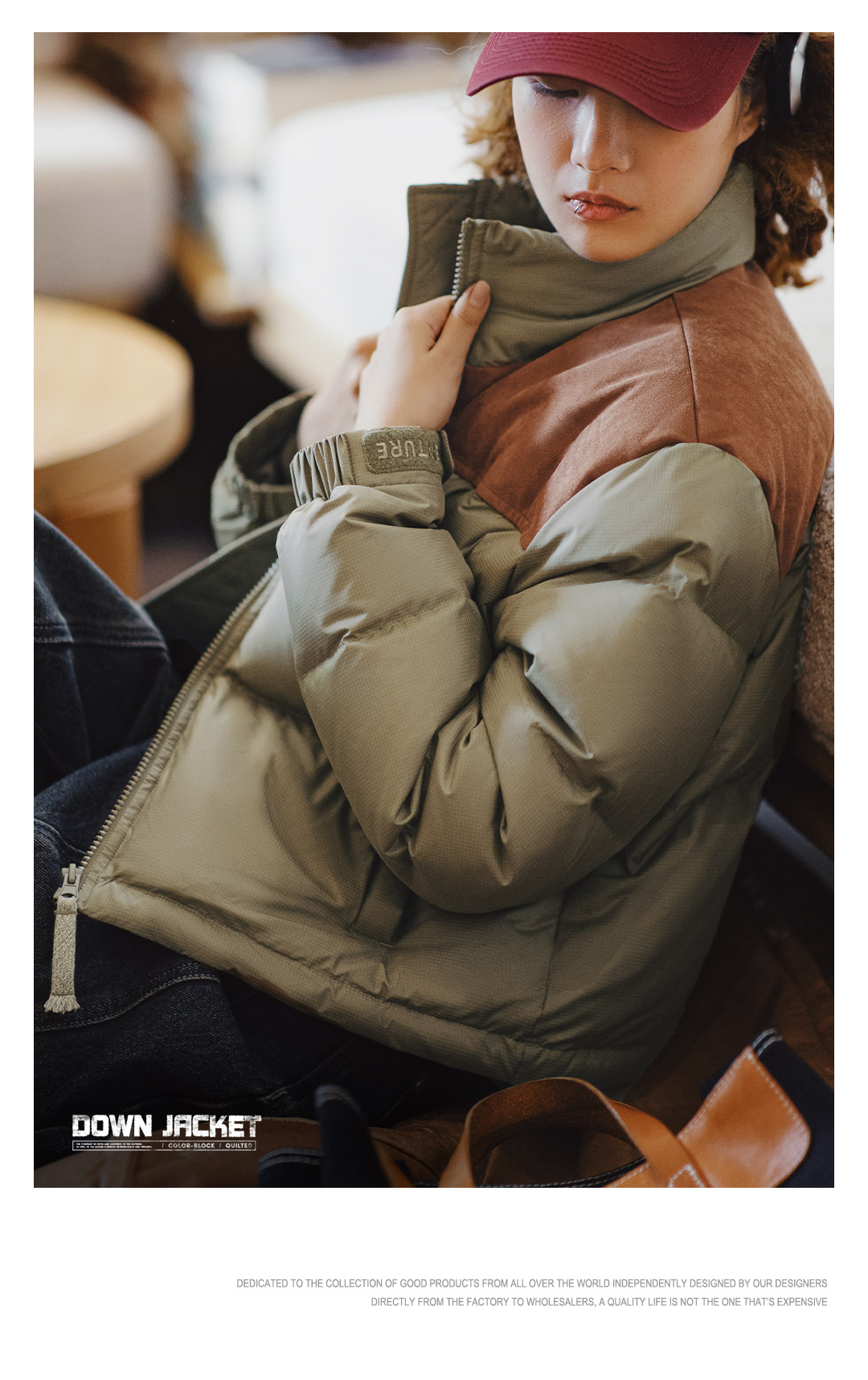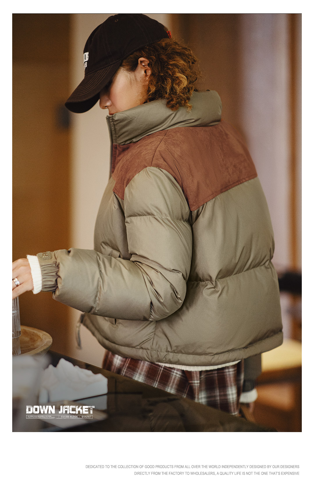 马登90白鸭绒立领撞色拼接短款修身加厚保暖面包羽绒服外套女士冬