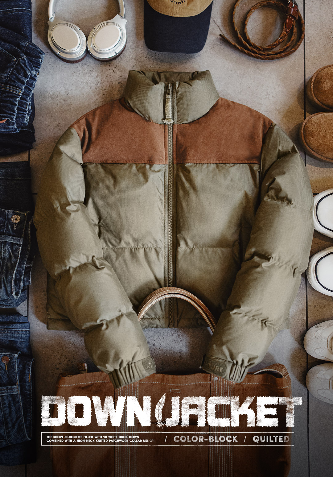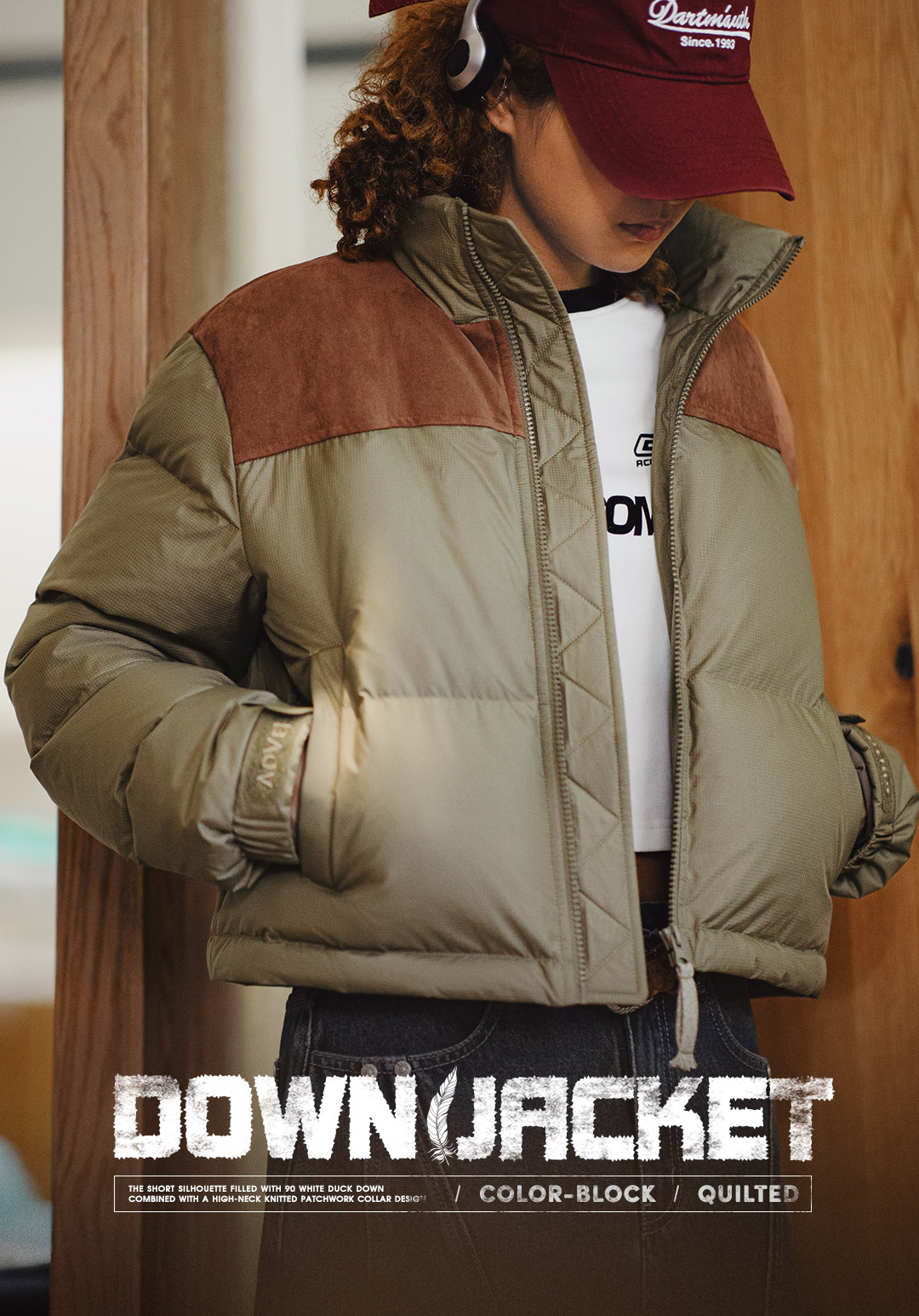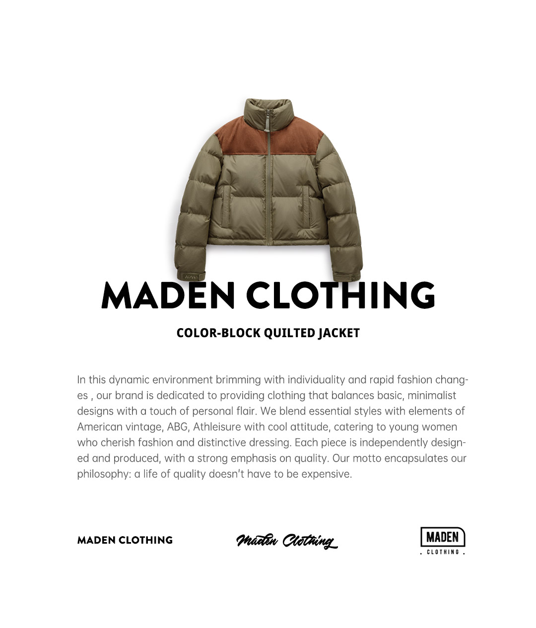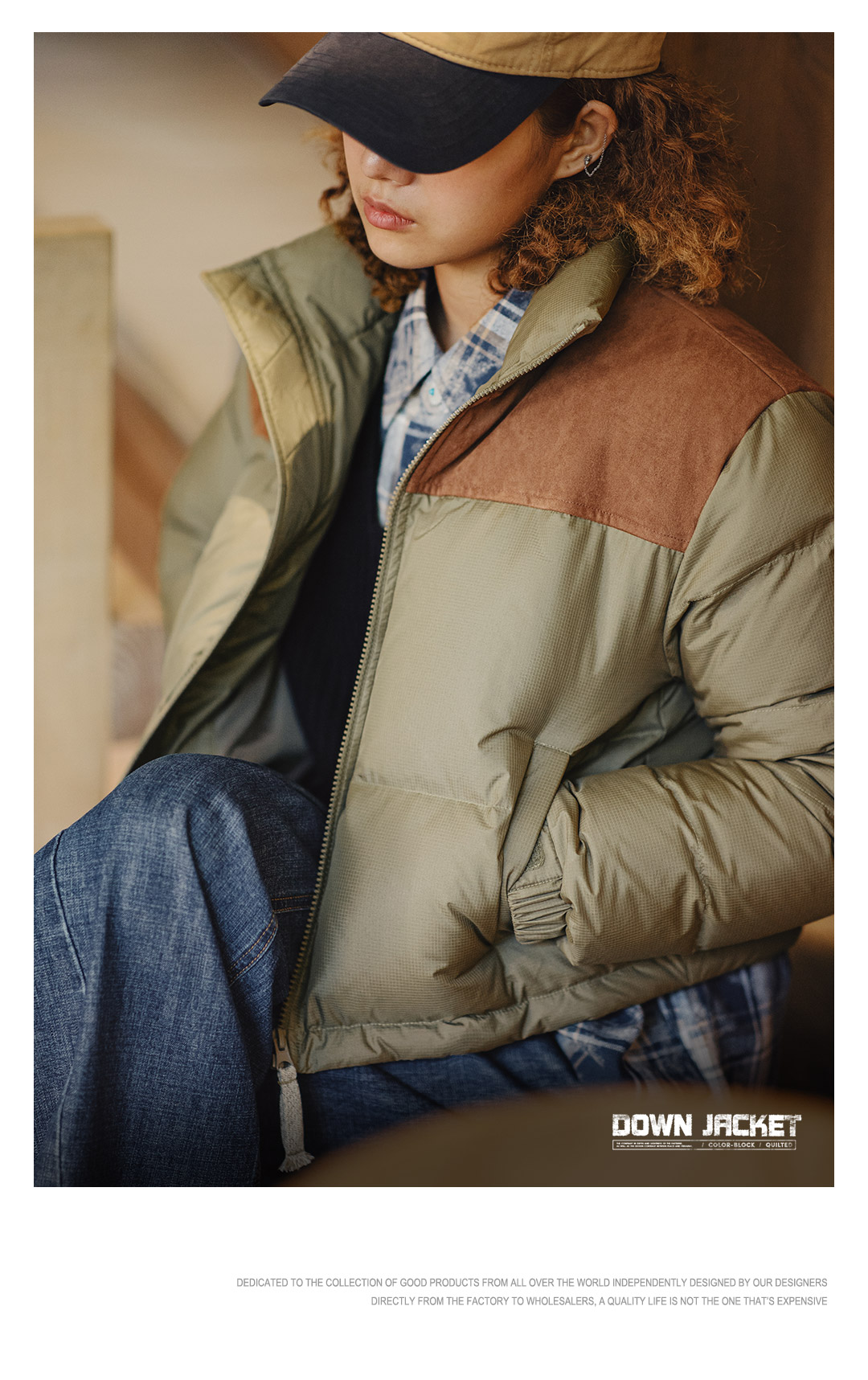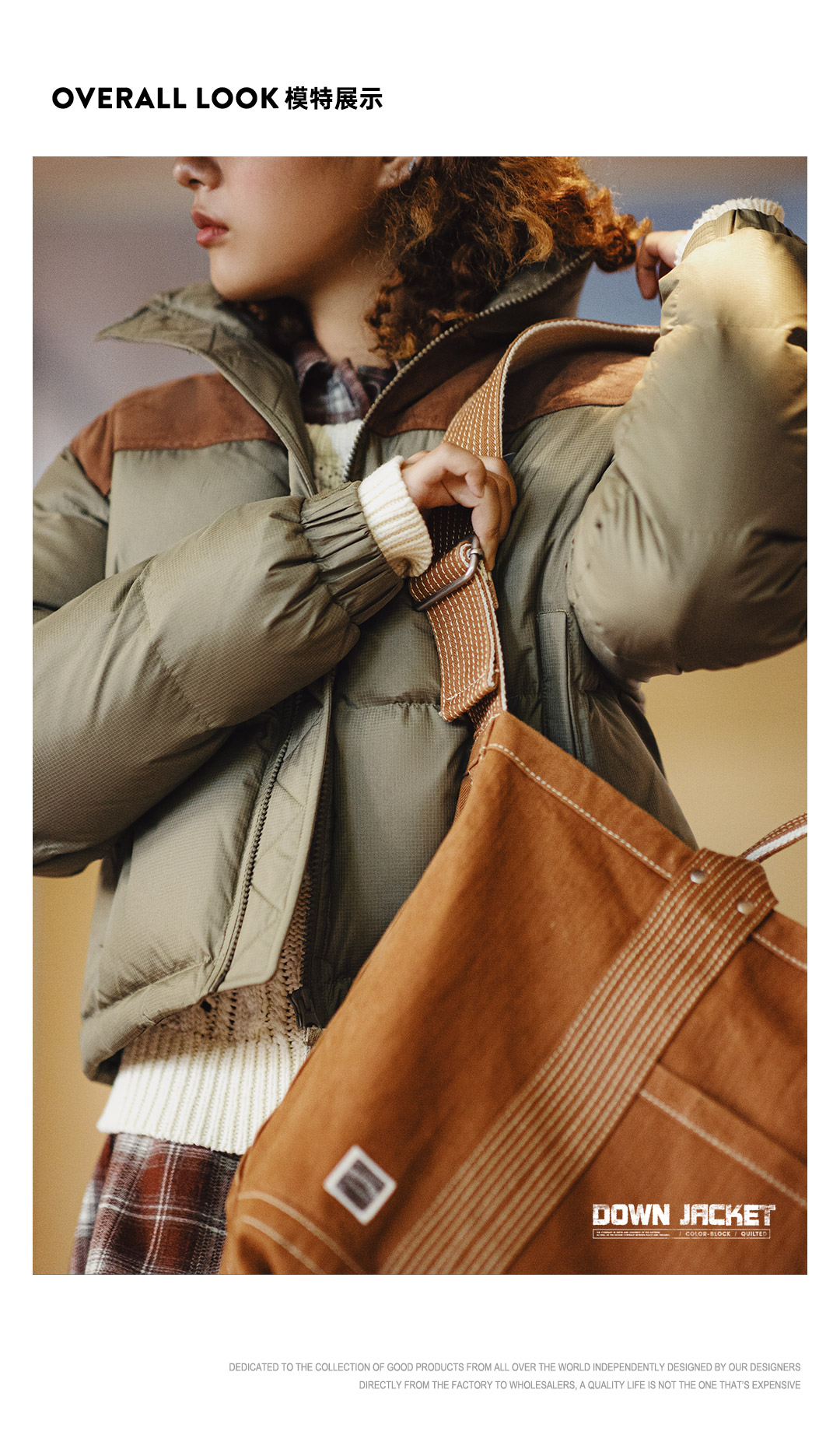 马登90白鸭绒立领撞色拼接短款修身加厚保暖面包羽绒服外套女士冬