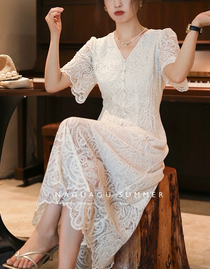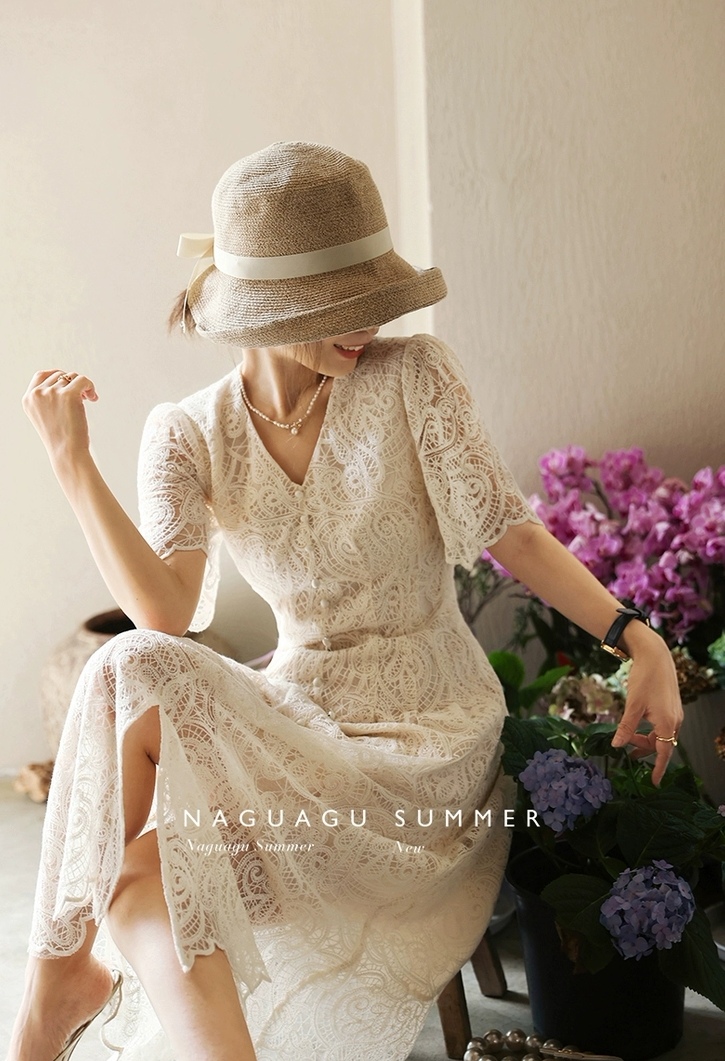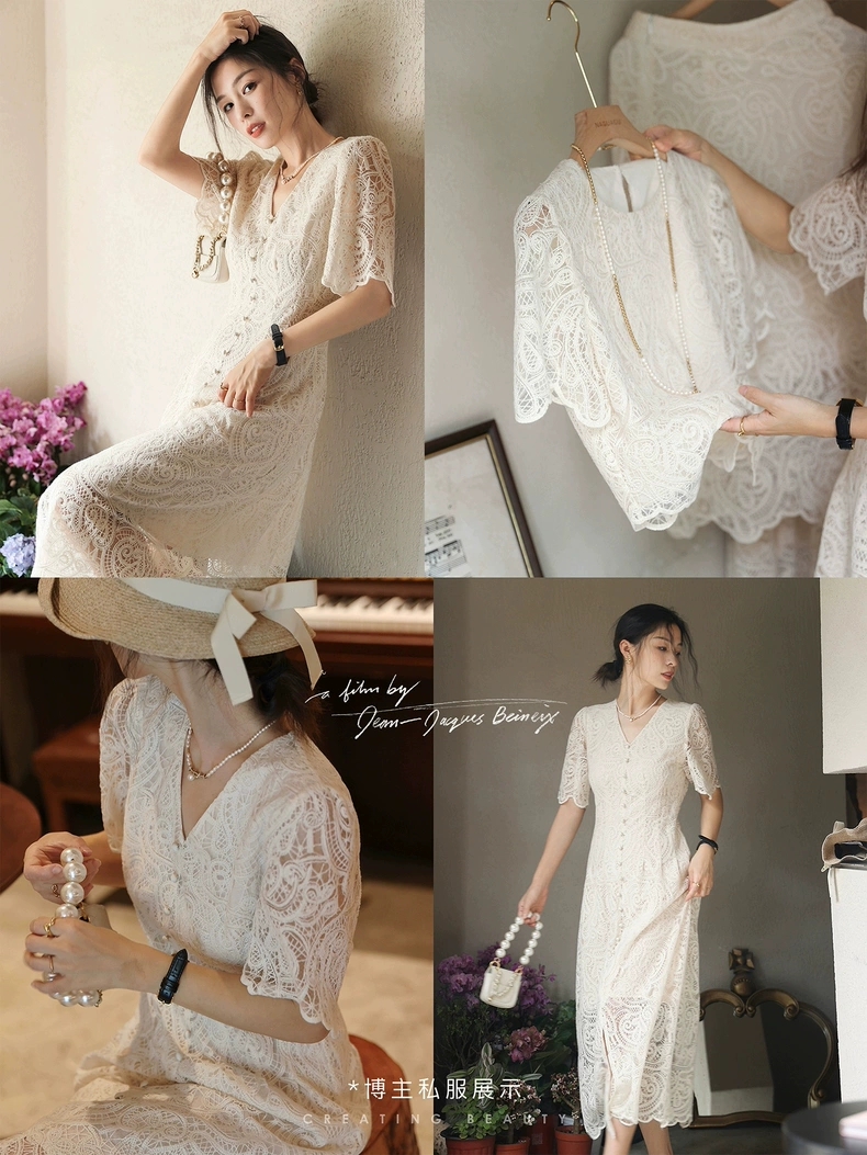 浪漫自由情调,搭配凉鞋草帽,精美的镂空+立体的裁剪工艺。