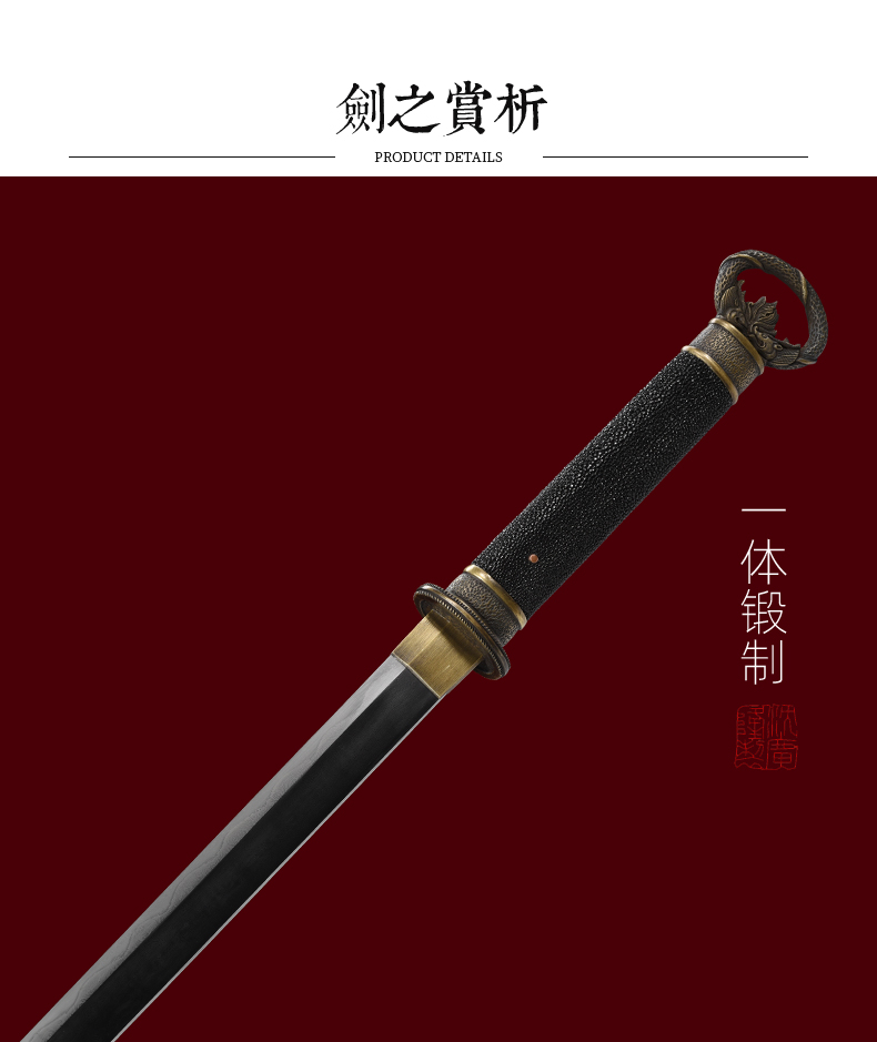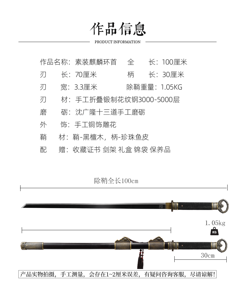 麒麟环首刀剑花纹钢龙泉沈广隆宝剑一体刀剑防身冷兵器 未开刃