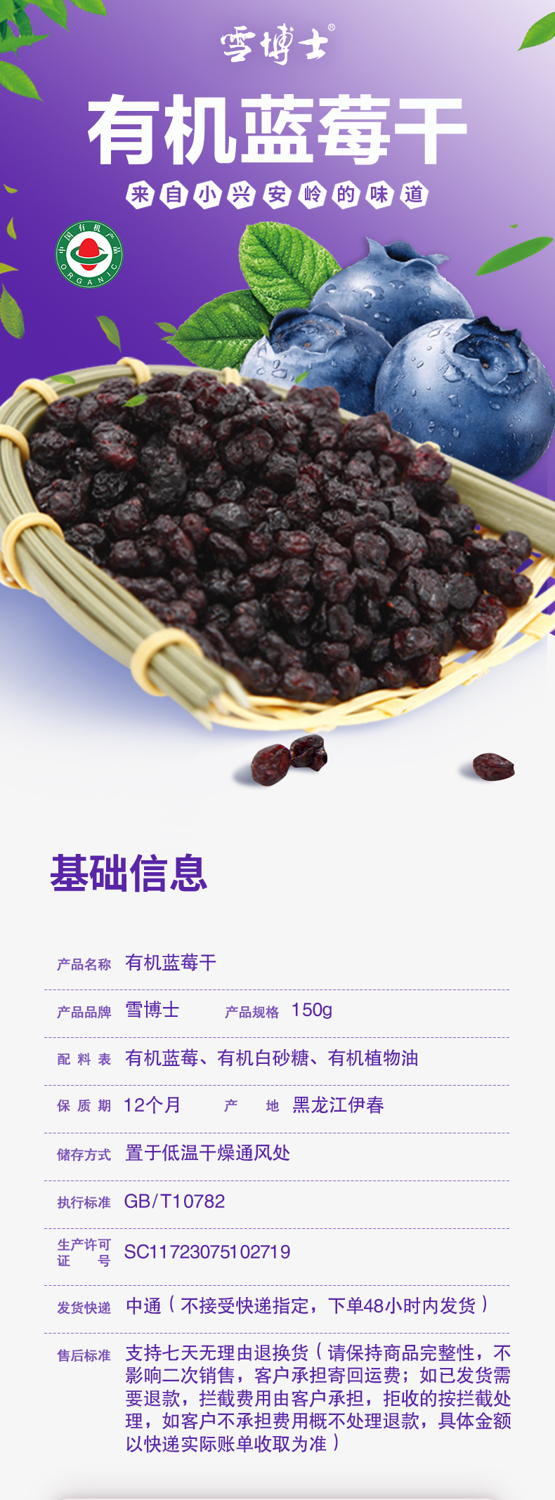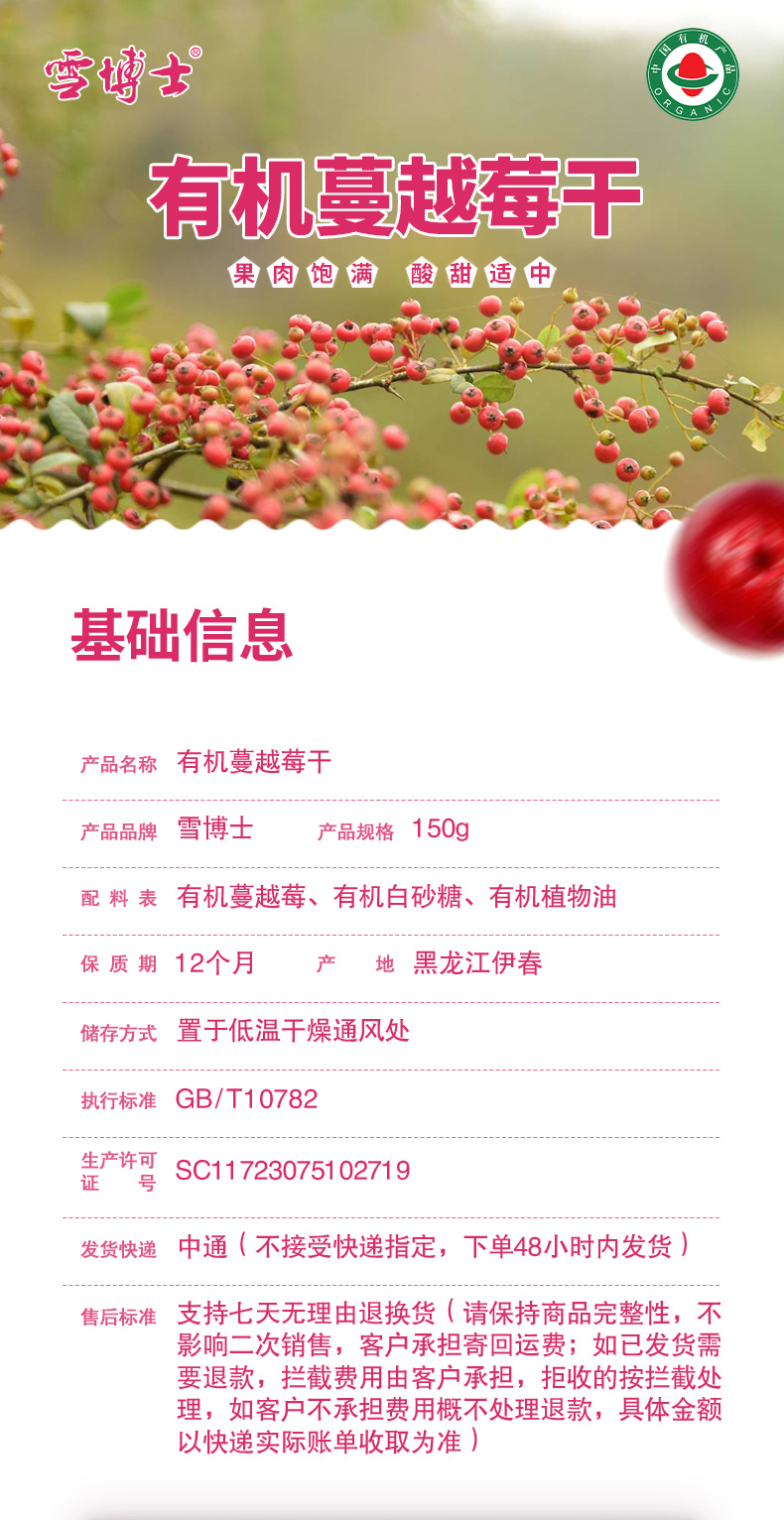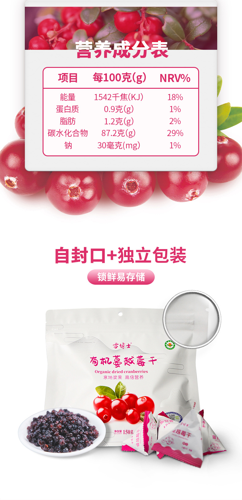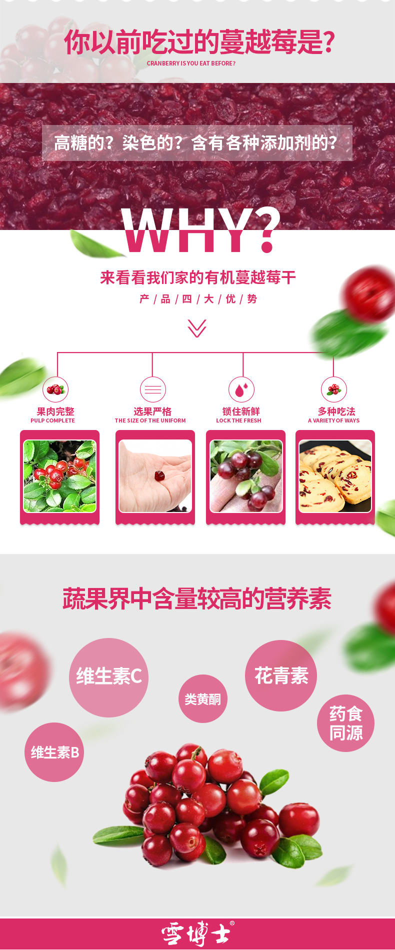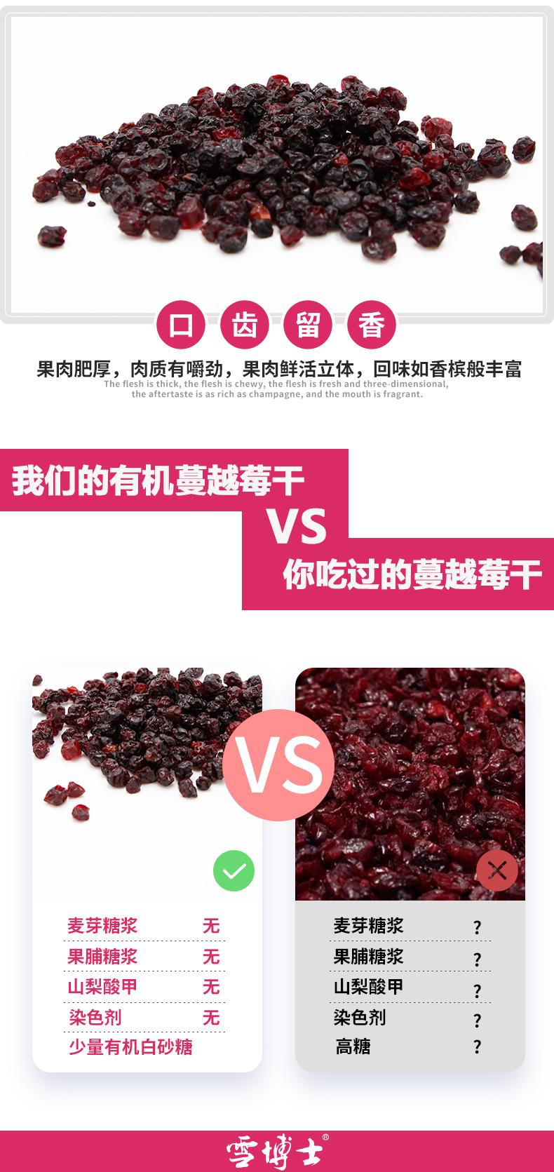 【厂商直发】有机蔓越莓干蓝莓干小兴安岭烘焙雪花酥原料孕妇即食果干休闲零食