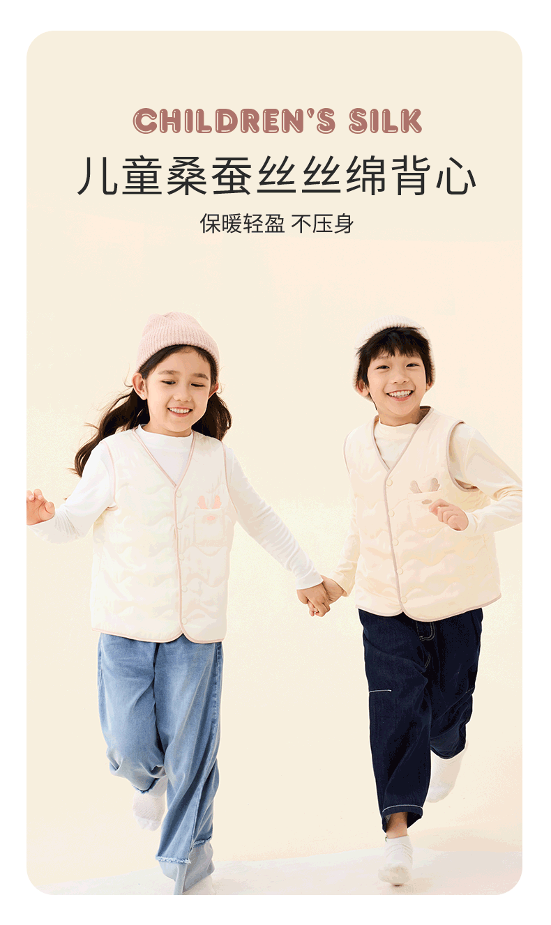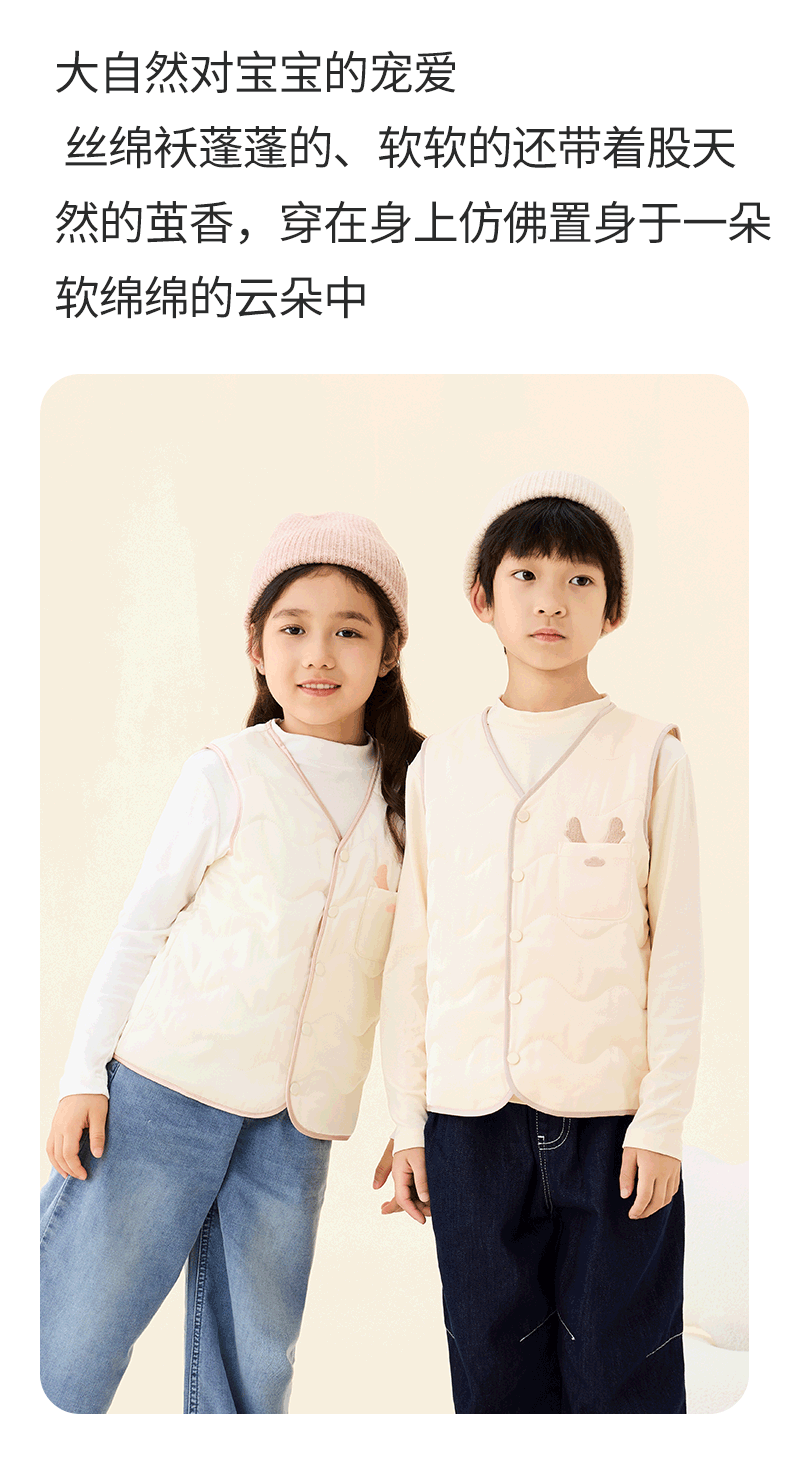 金三塔桑蚕丝填充保暖马甲儿童蓬松柔软秋冬新品丝绵宝宝棉袄 BBY024