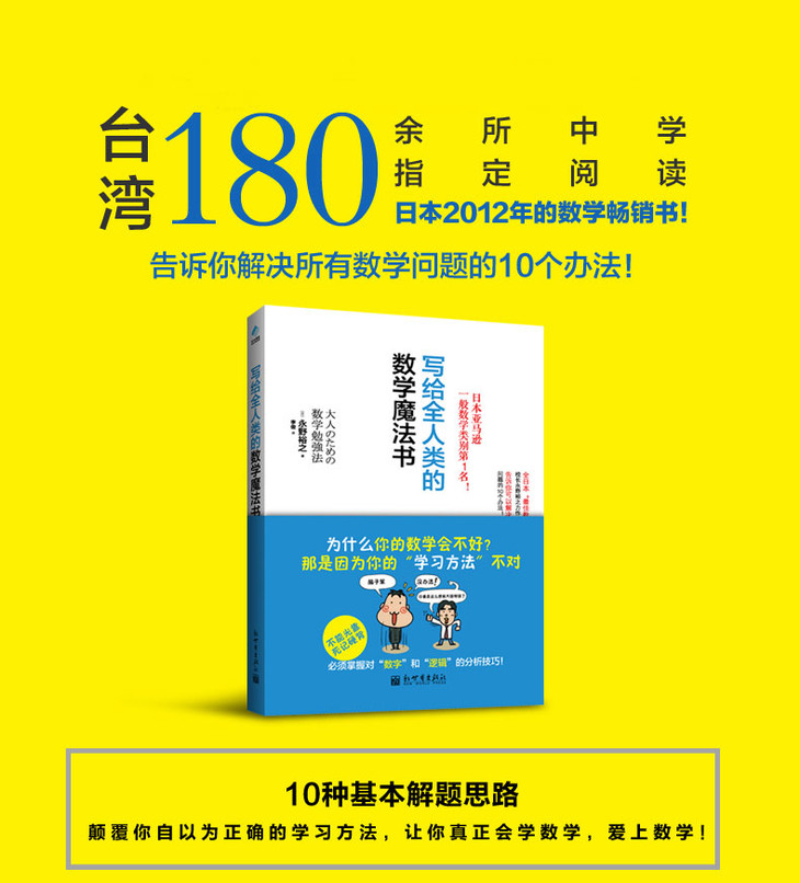 永野裕之,拥有20多年教学经验的“数学达人”,现任永野数学私塾校长。这是一所同时面向在校学生和成年人开班的数学培训学校,该校曾被NHK电视台、《日本经济新闻》、《商务杂志》等多家媒体报道,是三所日本全国“*数学培训学校”之一。作者反对死记硬背数学公式的传统学习方法,提倡学通、学透,进而领略数学的魅力,真正提高数学能力。