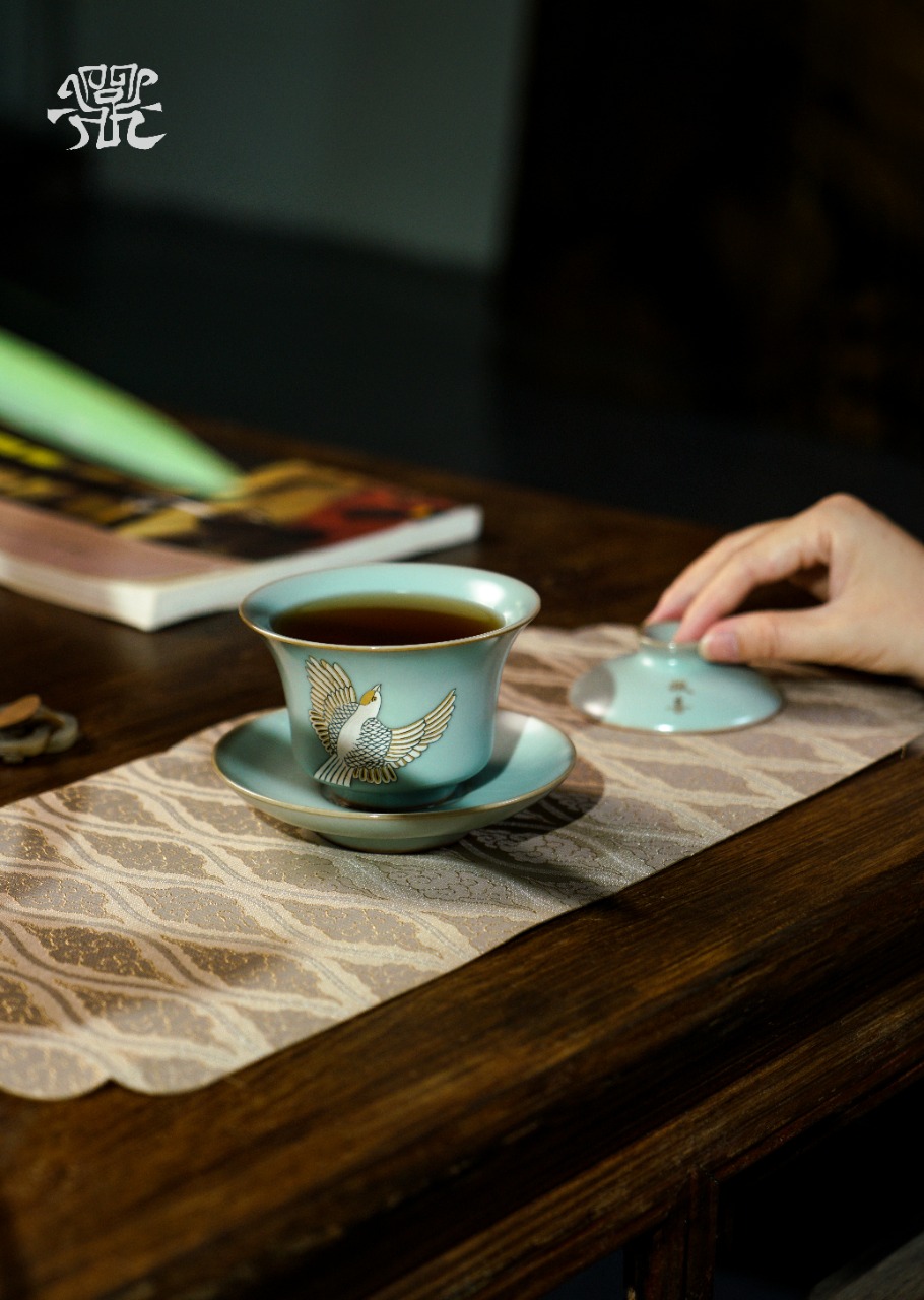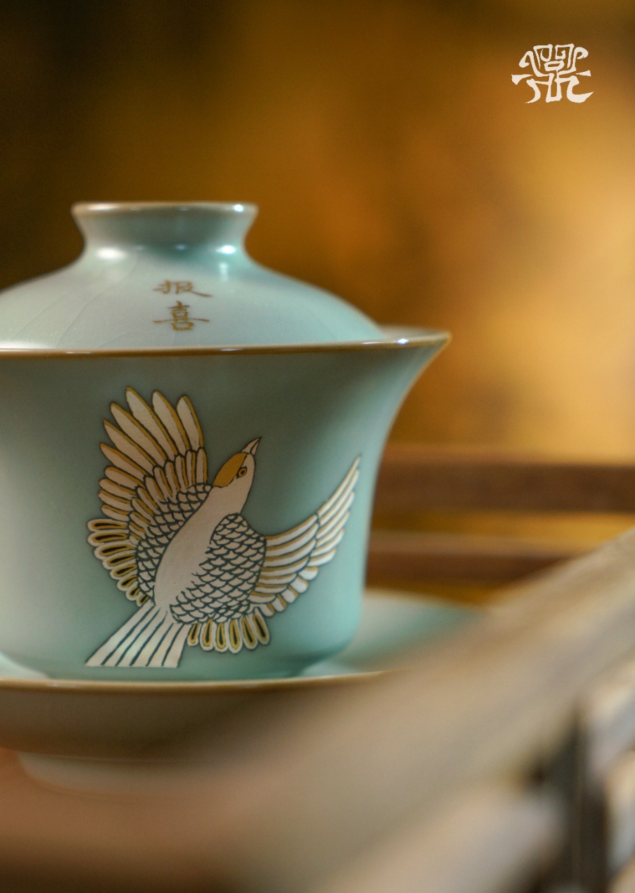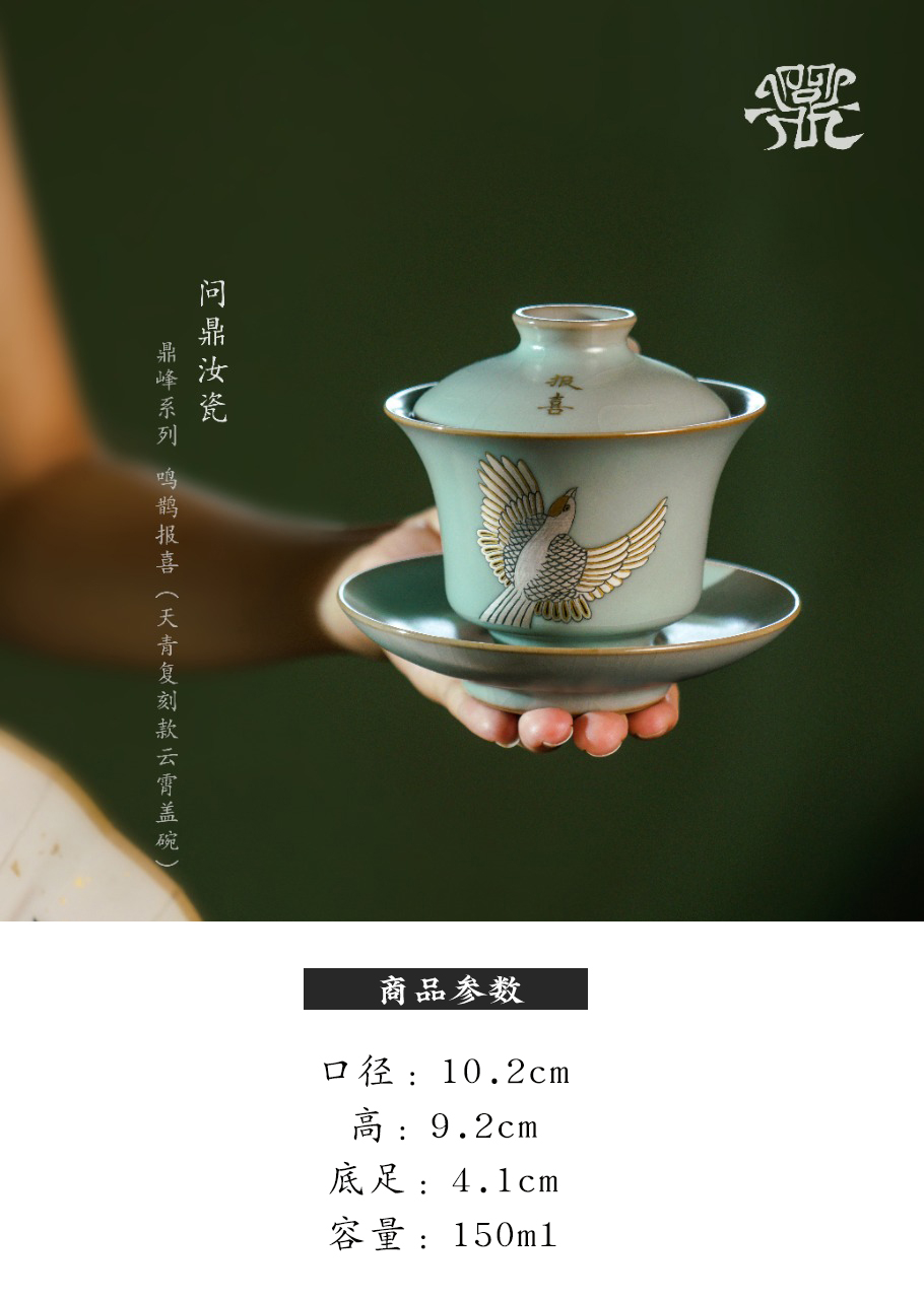 问鼎汝瓷鼎峰系列天青复刻款云霄盖碗(鸣鹊报喜)(缺货)