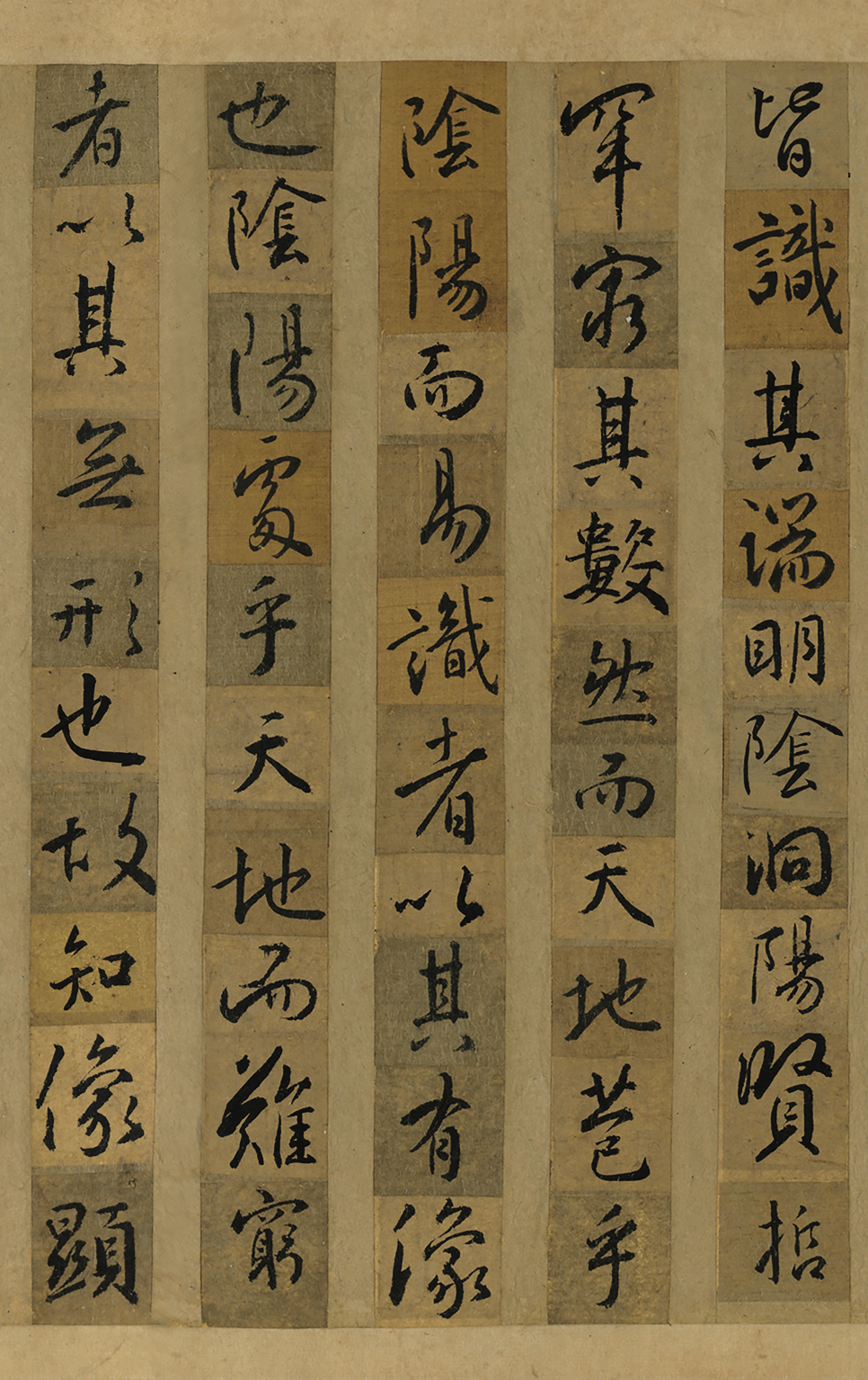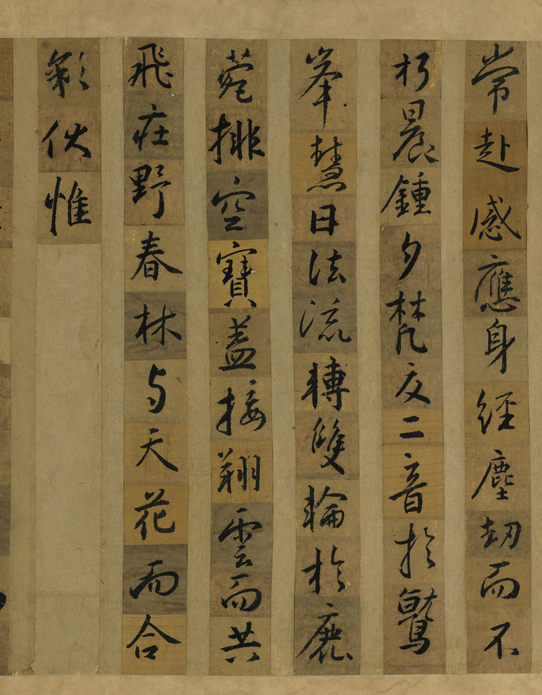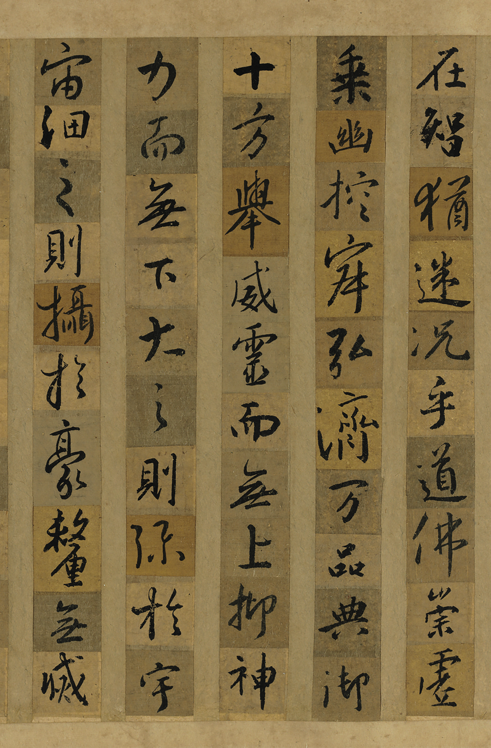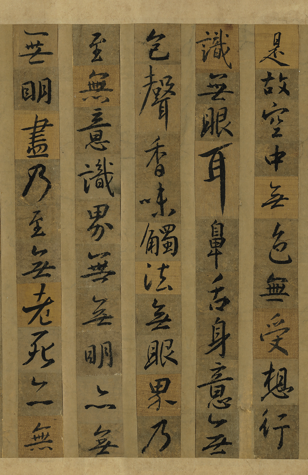 我们还真在台北故宫找到了一件墨迹本的《怀仁集王羲之圣教序》,上面文字的墨色浓淡、枯润变化,细节处用笔的牵连映带都清晰可见,胜过传世拓本100倍不止。这样说会不会夸张?