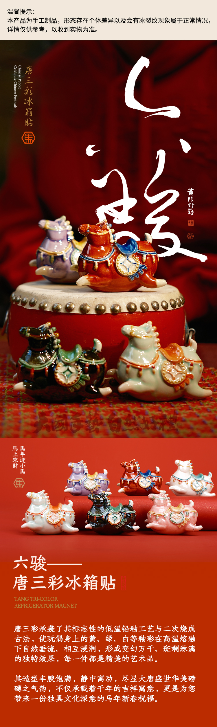 自然造物马年唐三彩冰箱贴陶瓷磁吸马上来财新年摆件生日礼物文创