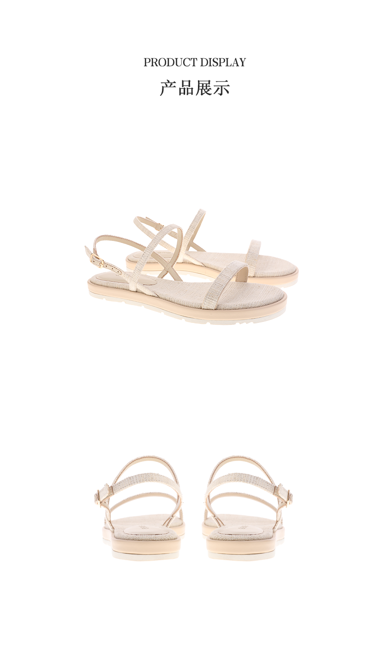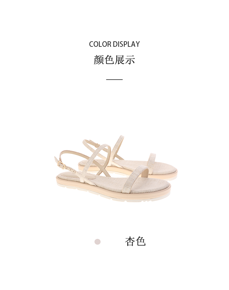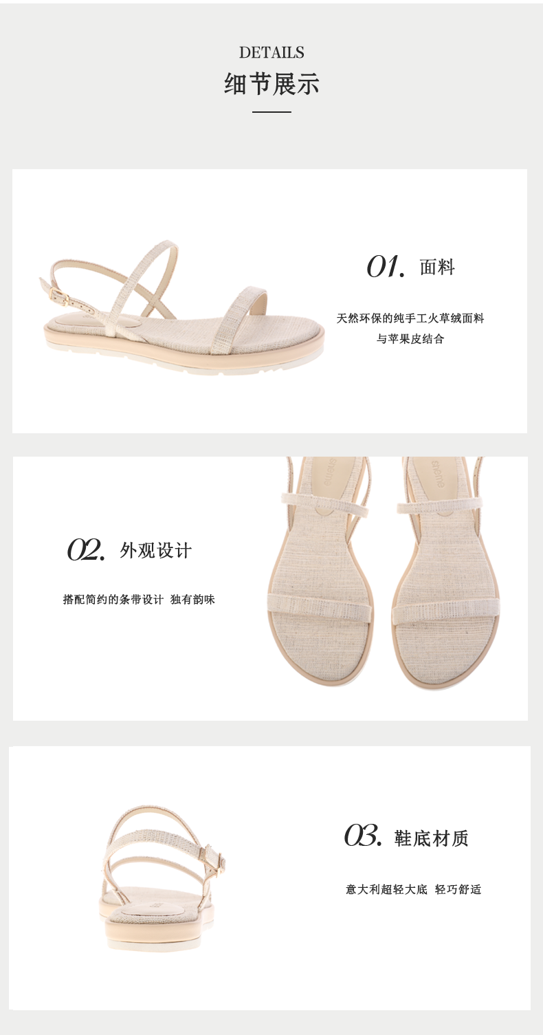 sheme天然火草绒简约条带独有韵味女士平底凉鞋可定制
