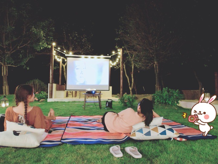 院子里的大草坪 晚上让管家安排上投影仪,手机连好设备,一家人的坝坝电影开始啦