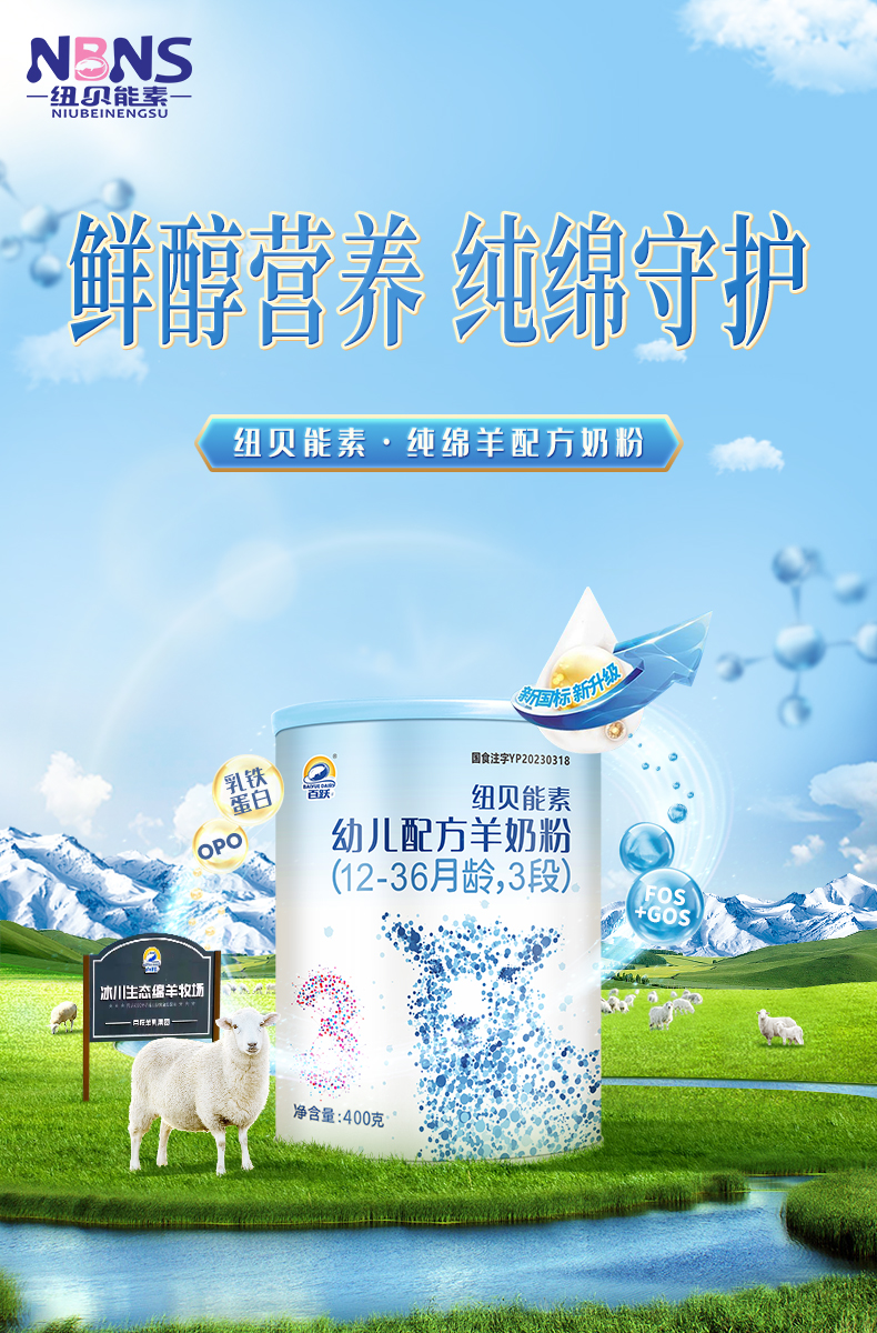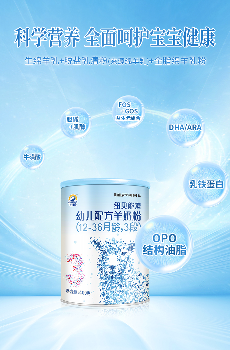 百跃纽贝能素3段婴幼儿配方羊乳粉400g (12-36个月)幼儿宝宝