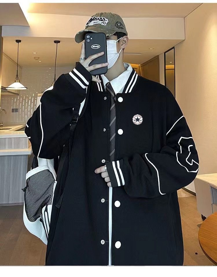 春秋情侣款短款棒球领工装夹克外套开衫。全面升级,定制华棉工装面料,高品质好货推荐!全身重工套结工装设计,胸前皮质logo贴面,简约不简单。上身舒适,有型。jing致短款棒球领设计,非常有个性。细节更是巧夺天工 到手见诚意oversize版型!