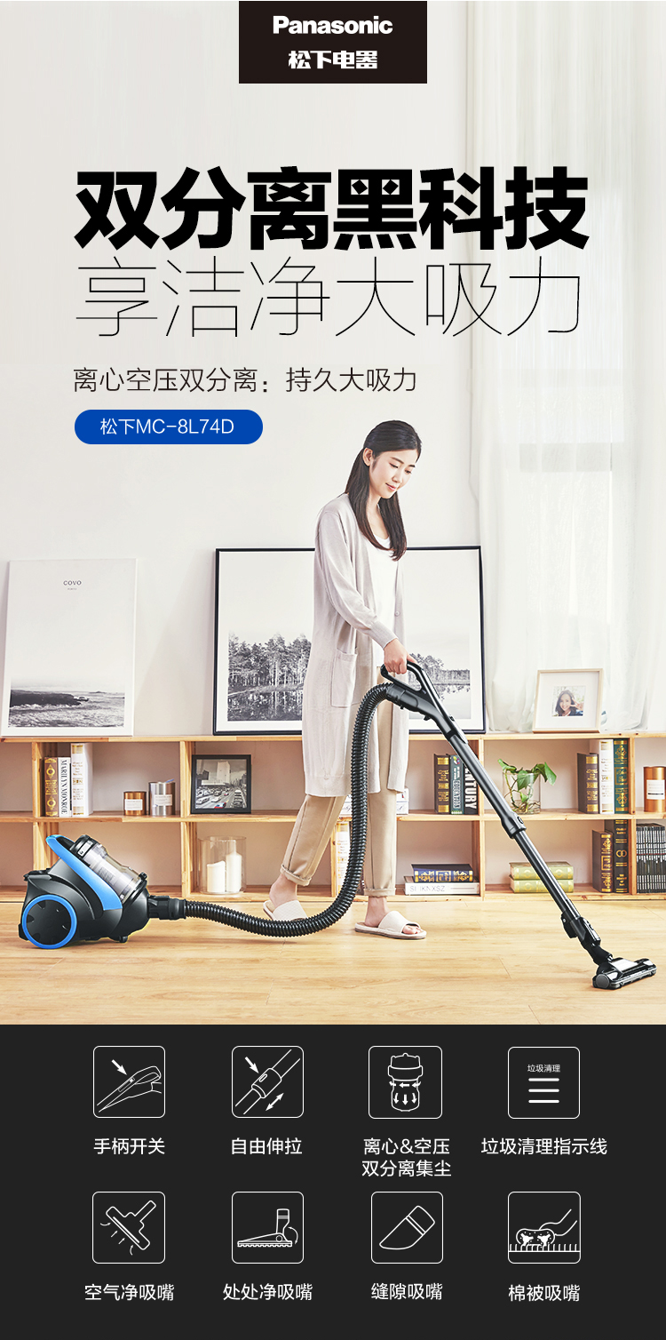 【云粉节】10楼 松下吸尘器MC-8L74D卧式家用除螨大吸力吸尘机手柄调节 8L74D吊牌价1599元 活动价1099元