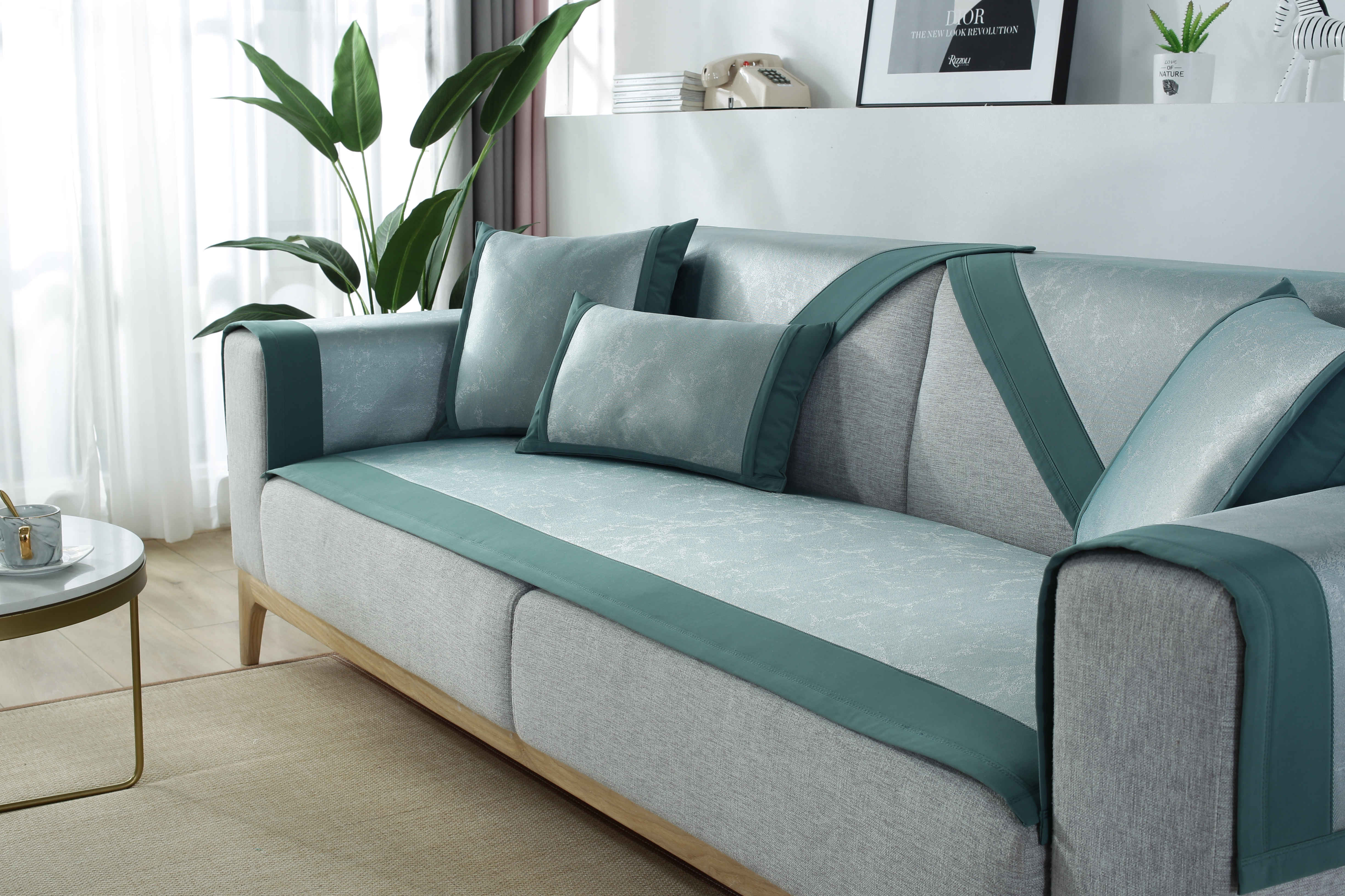 颜色:沁凉舒软沙发垫_大理石纹绿,