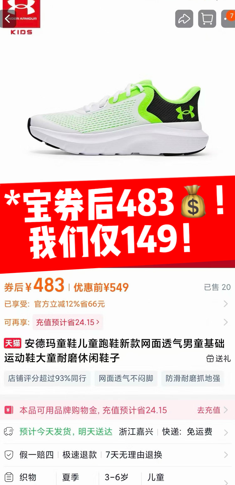 我们直接把安德玛奥莱线下**的“压箱底”库存搬来了价格一样比奥莱还香——*宝券后483!我们仅149!