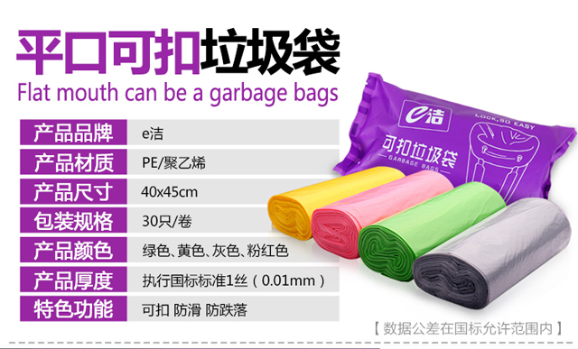 加厚厨房家用e洁平口可扣垃圾袋 4卷120个
