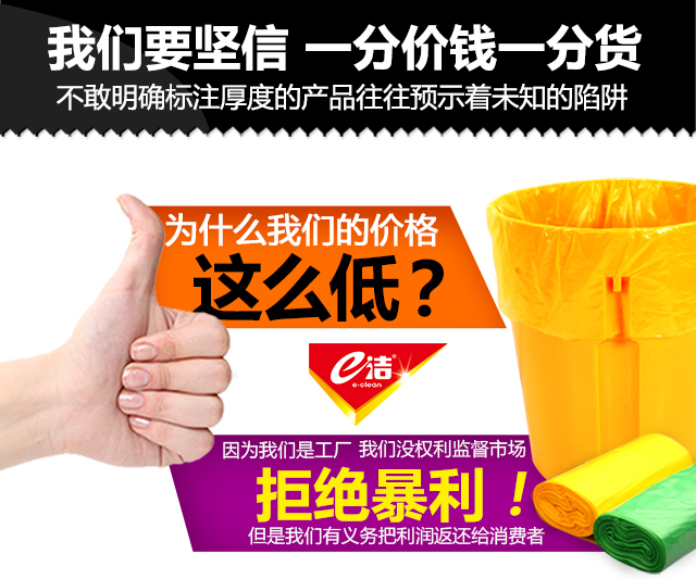 不穿漏/不脏手/骚气 e洁解忧良品自动收口抽取式垃圾袋