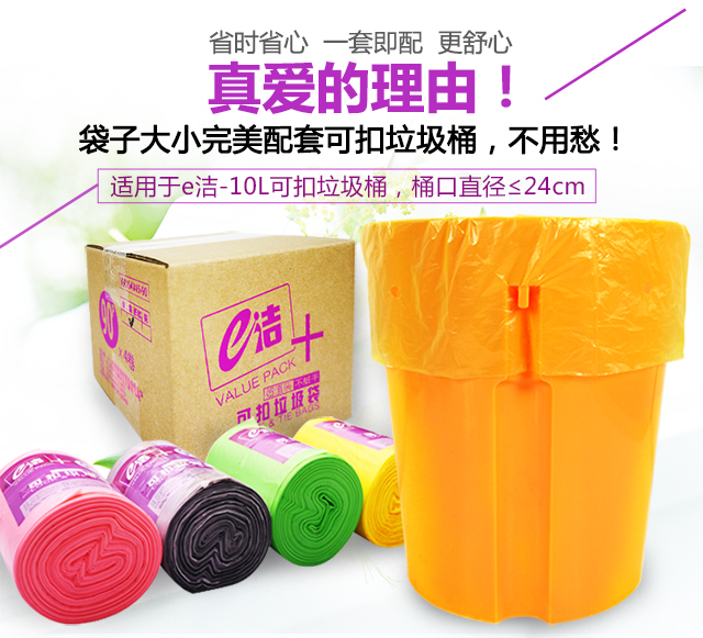e洁自动收口垃圾袋不易穿漏/大容量/不脏手10卷180只【买2套送5卷】