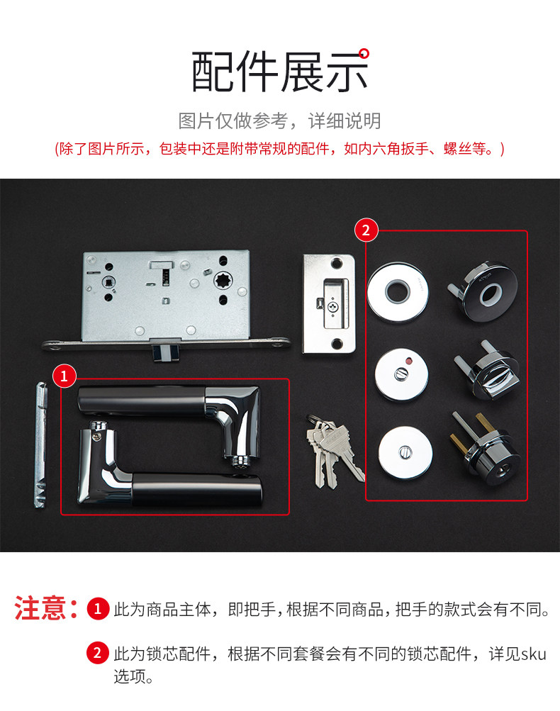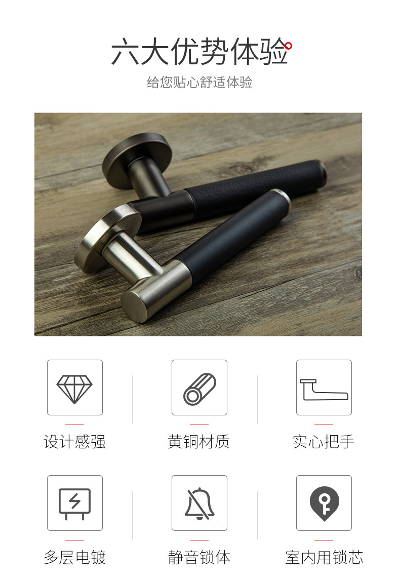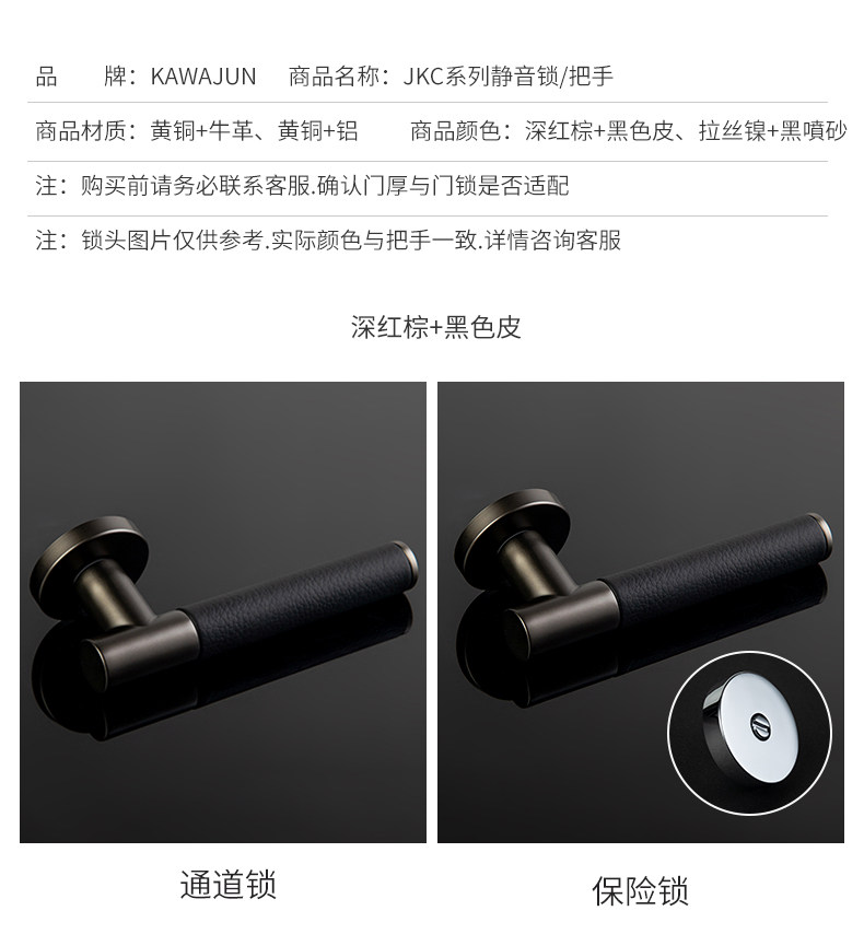 KAWAJUN静音门锁家用通用型把手卫浴卧室房门无钥匙安全门锁室内