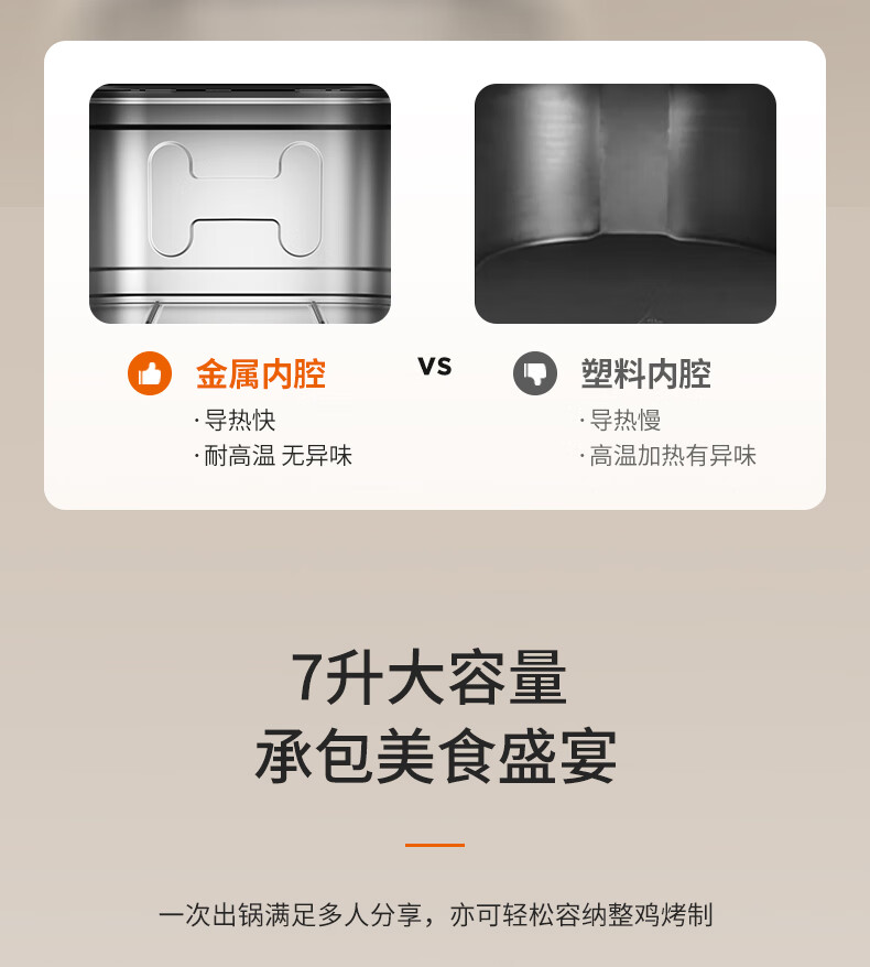九阳空气炸锅7升L大容量蒸汽嫩烤炸锅家用多功能电炸锅电烤箱V591