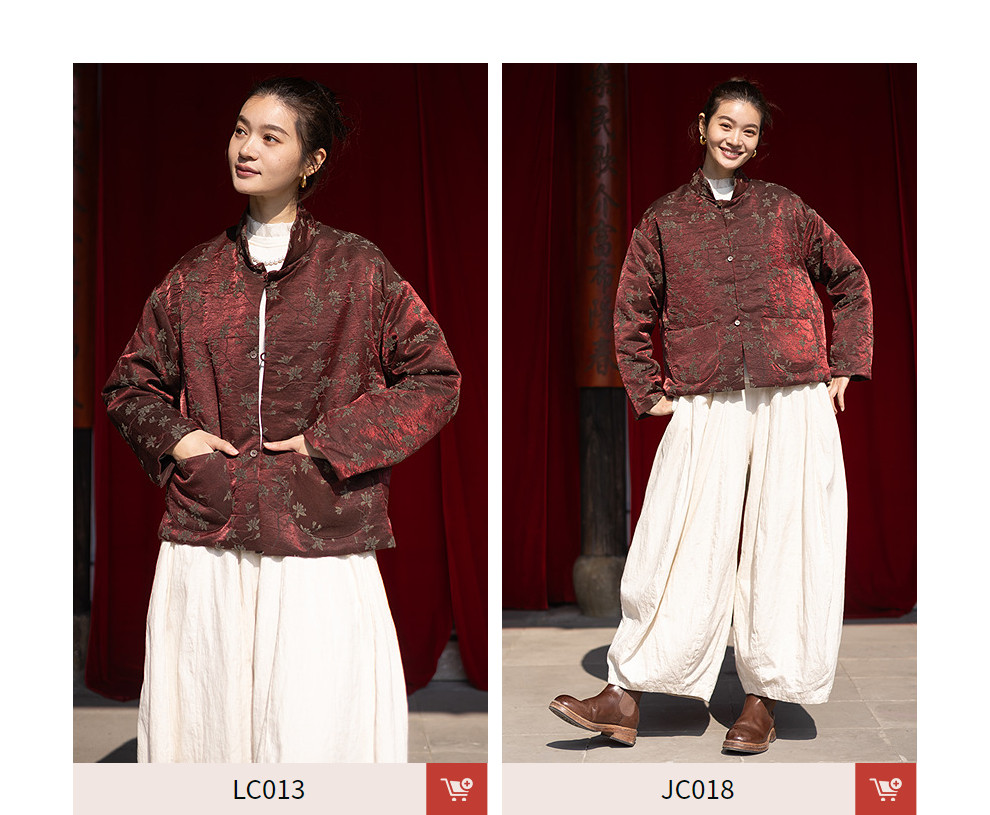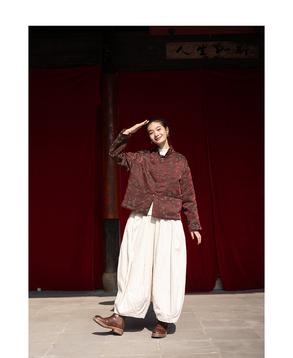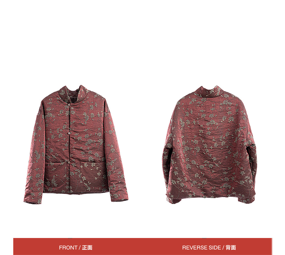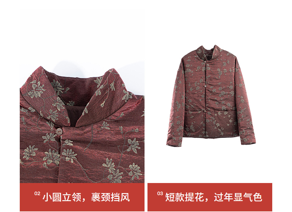 绽放059朵/过年bi备提花红暖棉服·红棕色短款长袖棉衣女冬厚外套