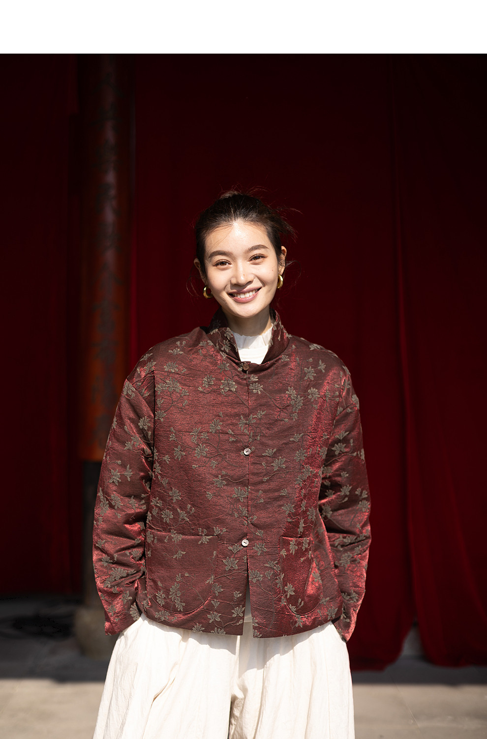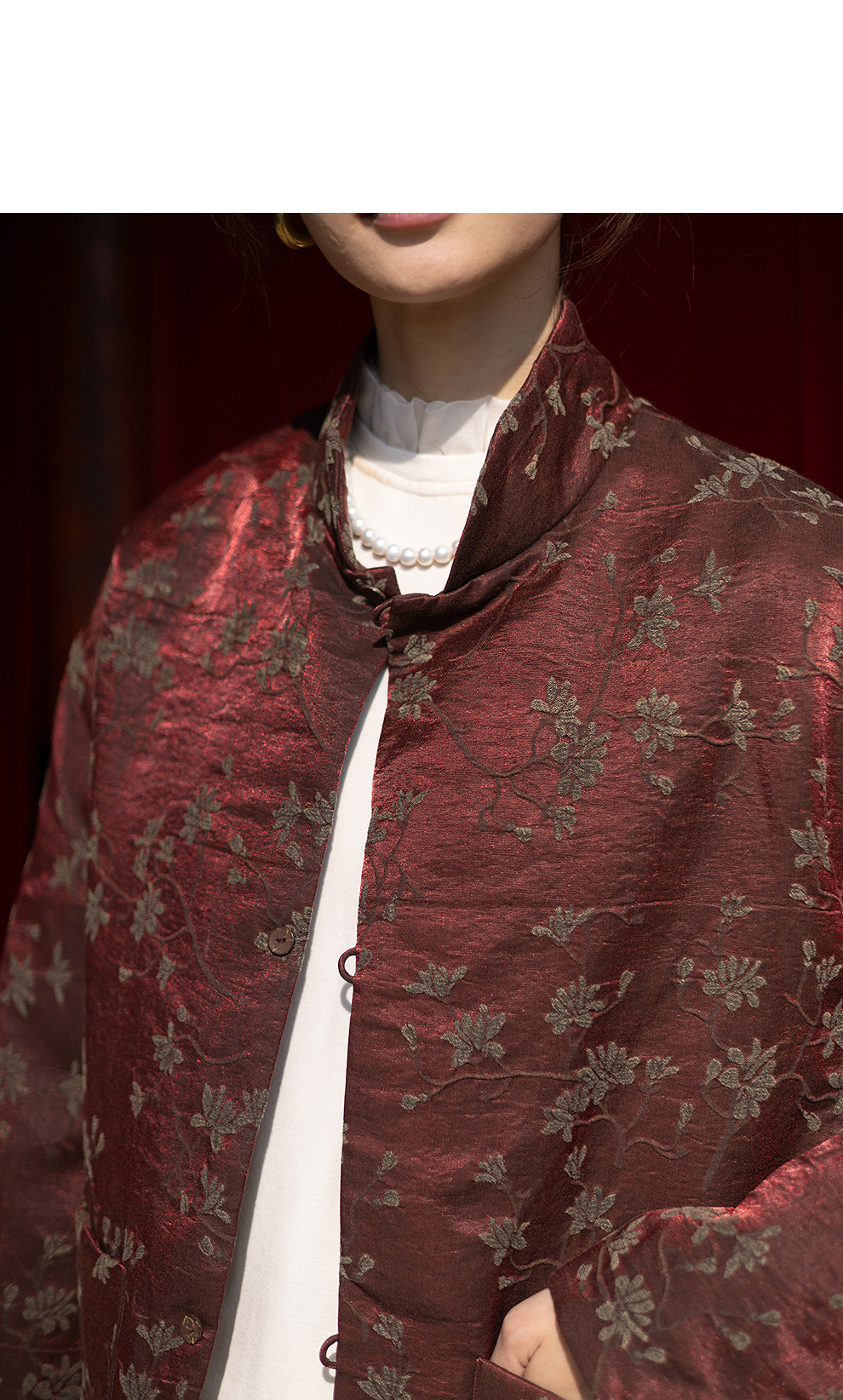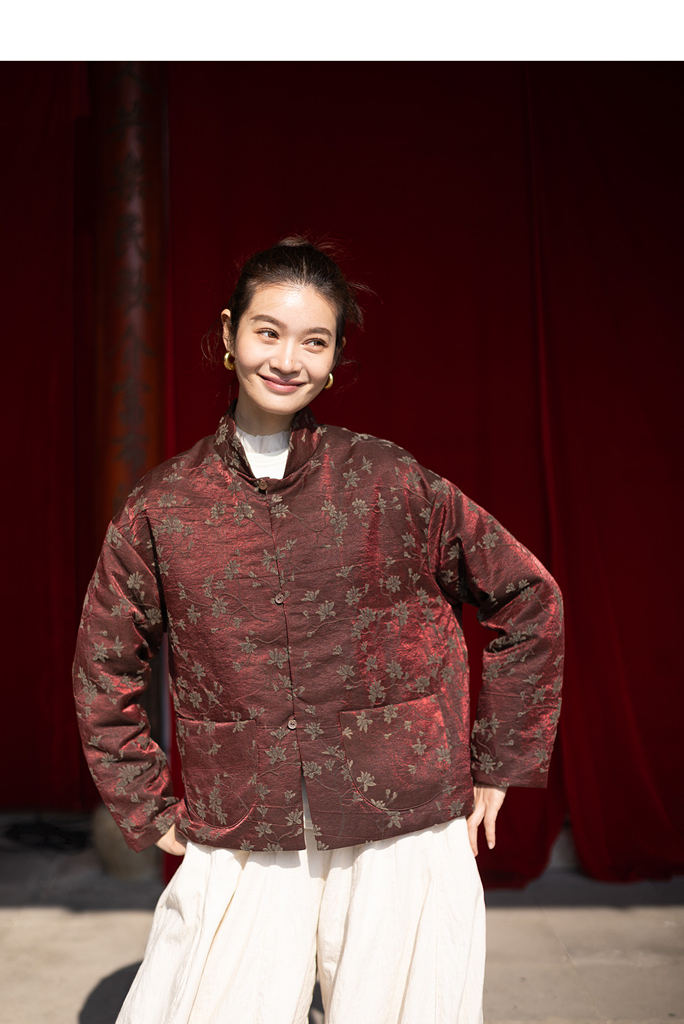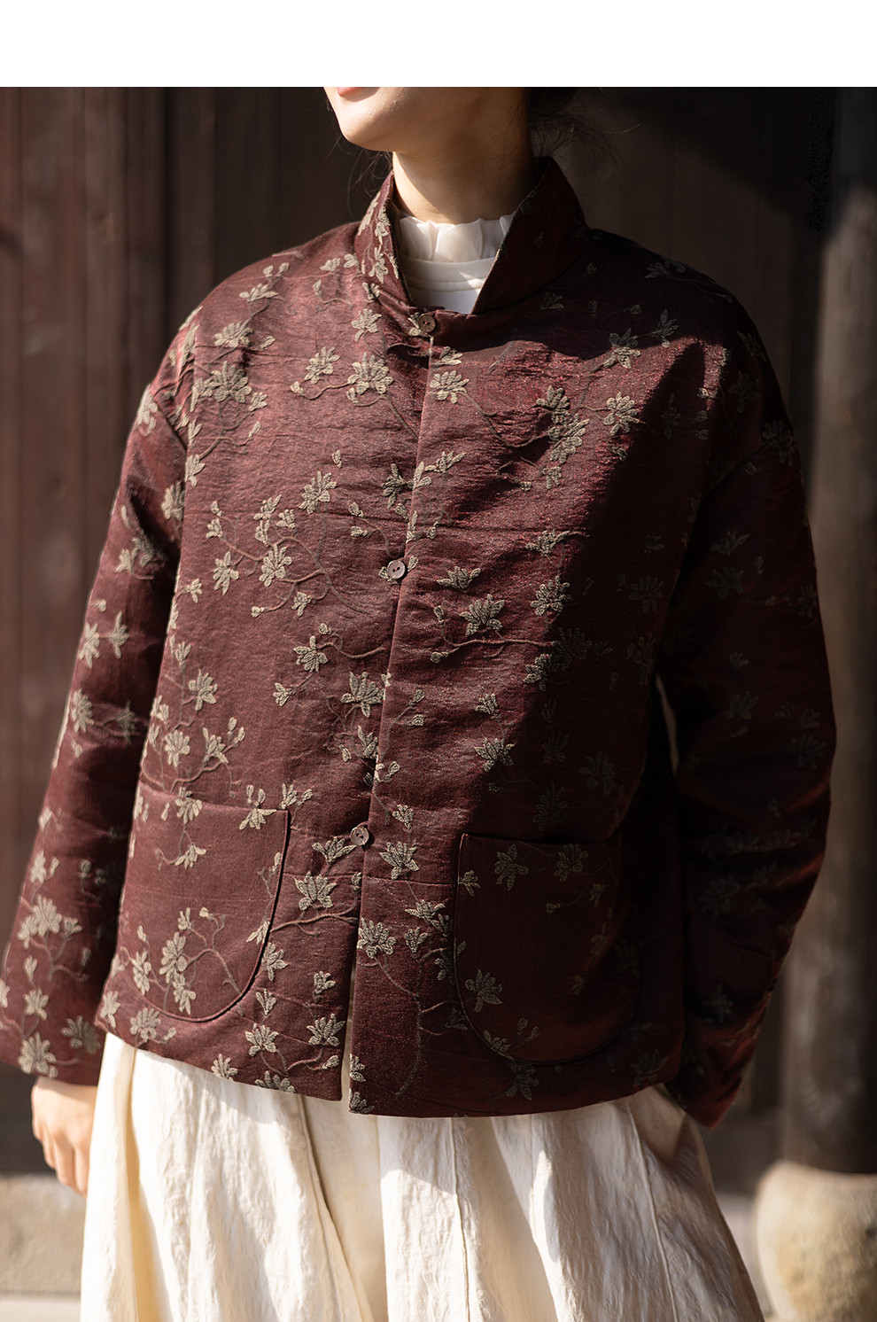 绽放059朵/过年bi备提花红暖棉服·红棕色短款长袖棉衣女冬厚外套