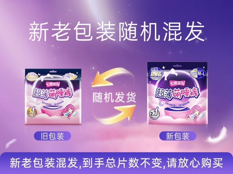 七度空间裤型卫生巾 M-L码2+1片 超薄萌睡裤防漏安心裤夜用安睡裤