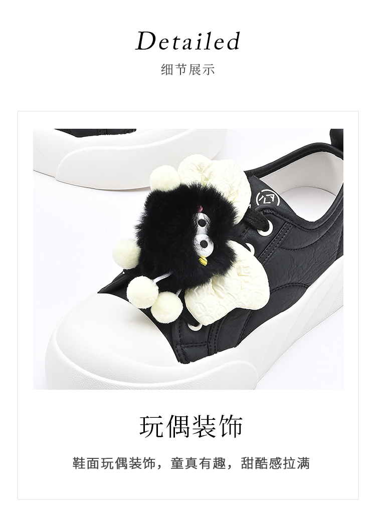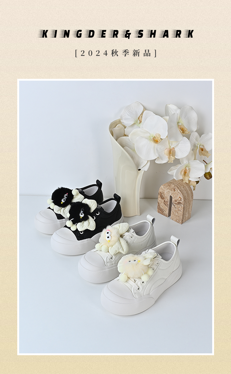经典鲨2024年秋季新款韩版平底舒适丑萌挂件休闲鞋小白鞋女KW291-D37051