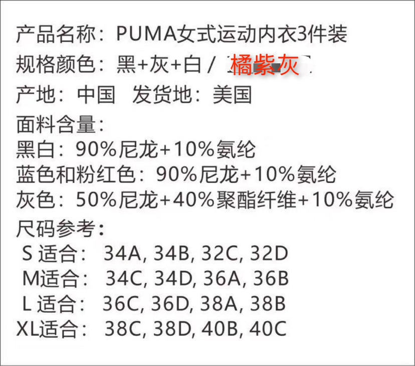 美国🇺🇸直邮特价248元/3个装🉐包税包邮到手了,Puma女士运动专业文胸内衣3件装,这款更适合夏天!