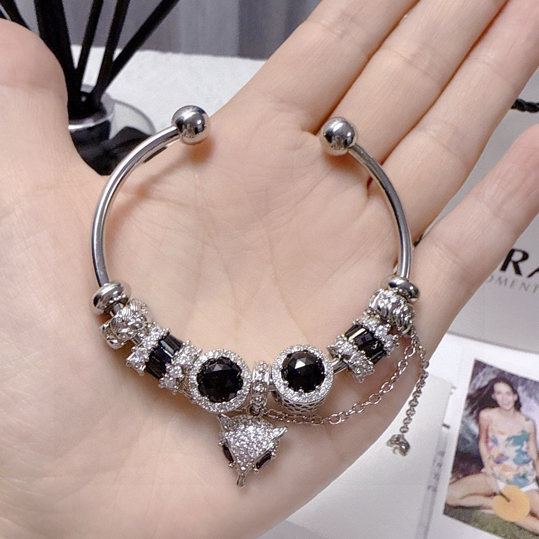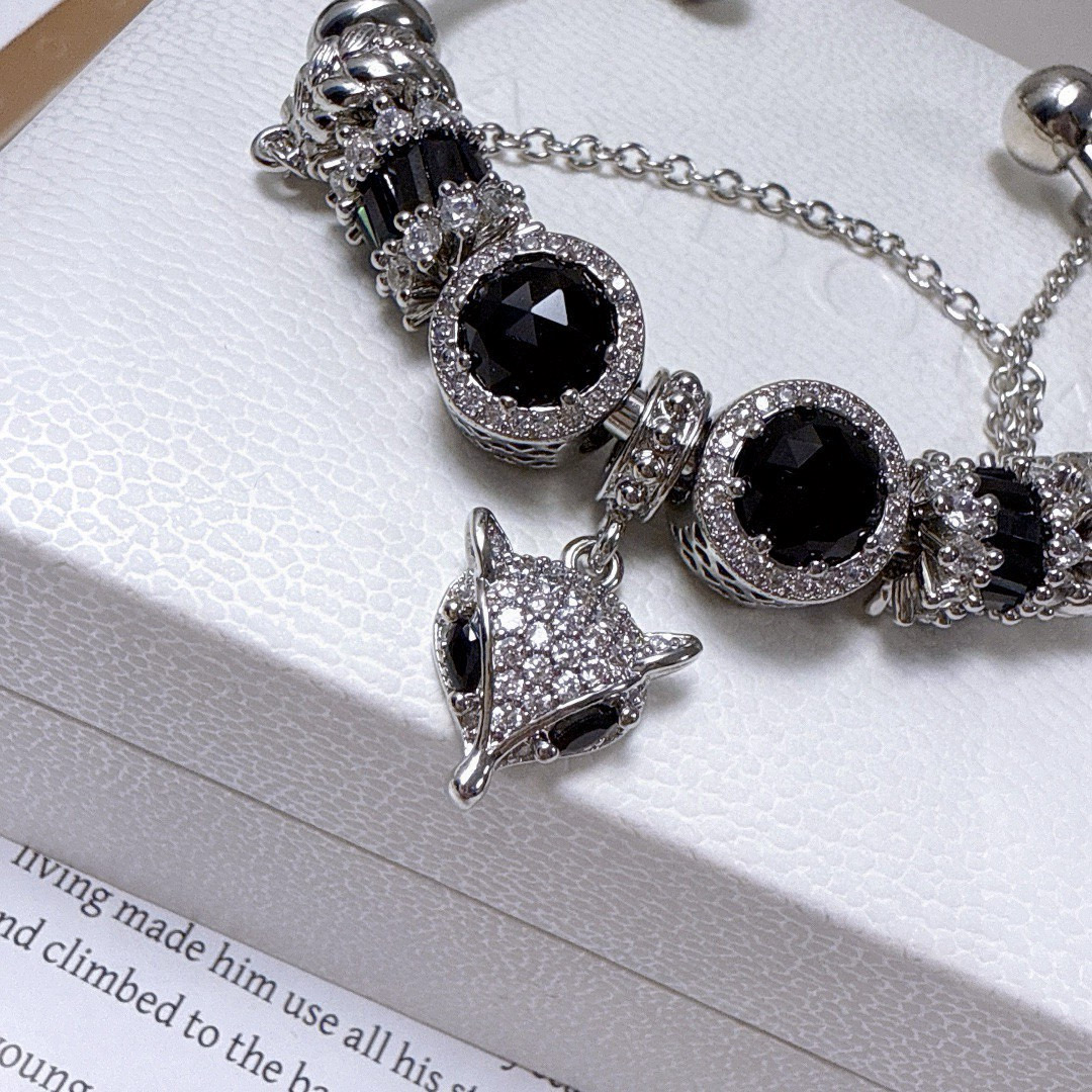 潘多拉黑色耀石狐狸吊坠 开口手镯 这款手链能完美演绎出每个女性的风韵 潘多拉手链让你在人群之中卓然出众的效果!不喜欢过于复杂的可以选择这款!简单大方 象征着内心的纯净与美好!每个女孩子都应该有个粉红色的梦🌸 ⚠️注:佩戴更需注意保养,洗澡不要佩戴,不要接触酸性物质例如硫磺皂、洗衣液等......八心八箭钻,全手工镶嵌,限量出售,配专柜全套包装,你还在等什么