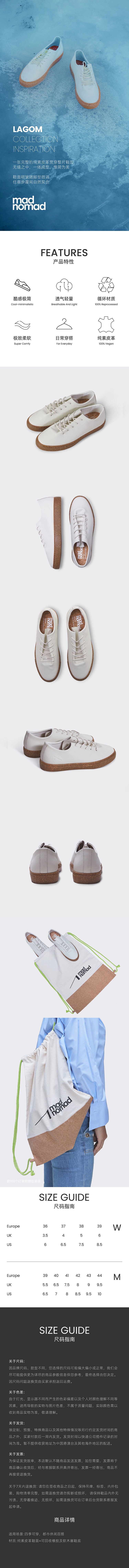 madnomad|沙米白 Lagom vegan sneakers 素皮软木底鞋 荔枝纹