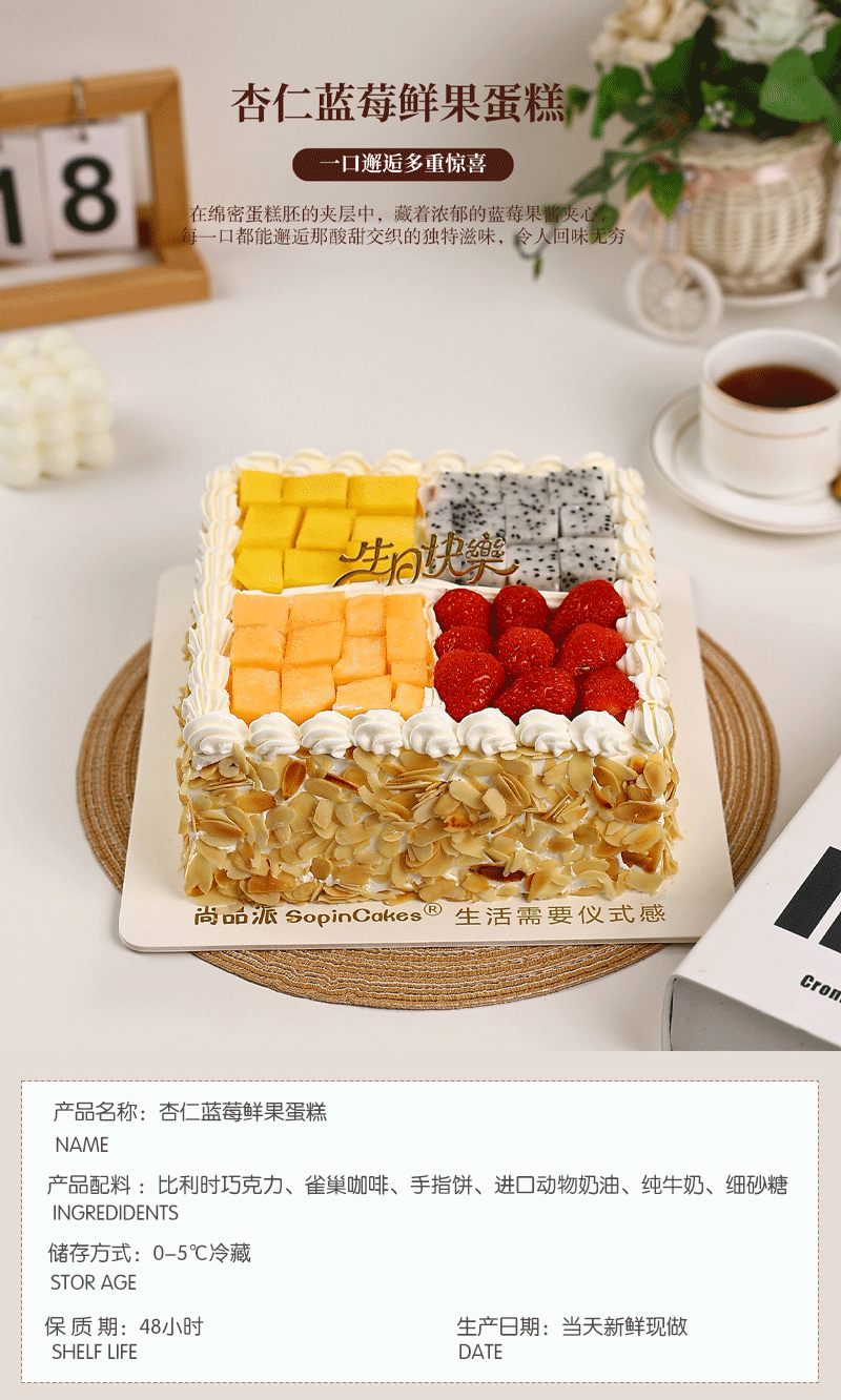 杏仁蓝莓鲜果蛋糕,一口邂逅多重惊喜~【惠州】
