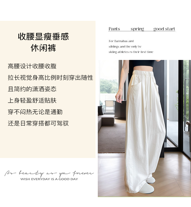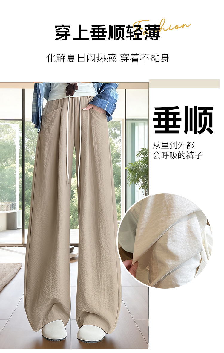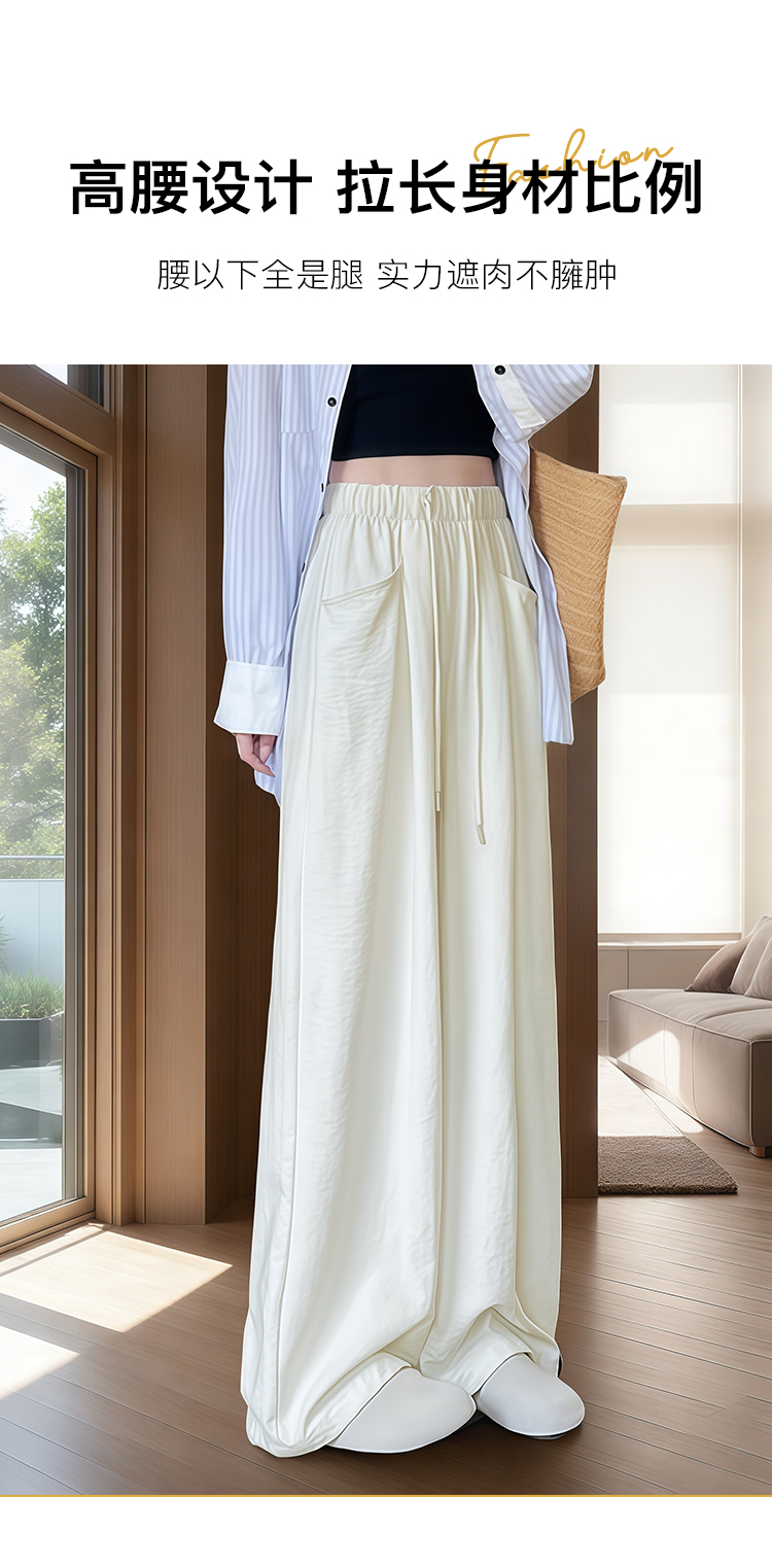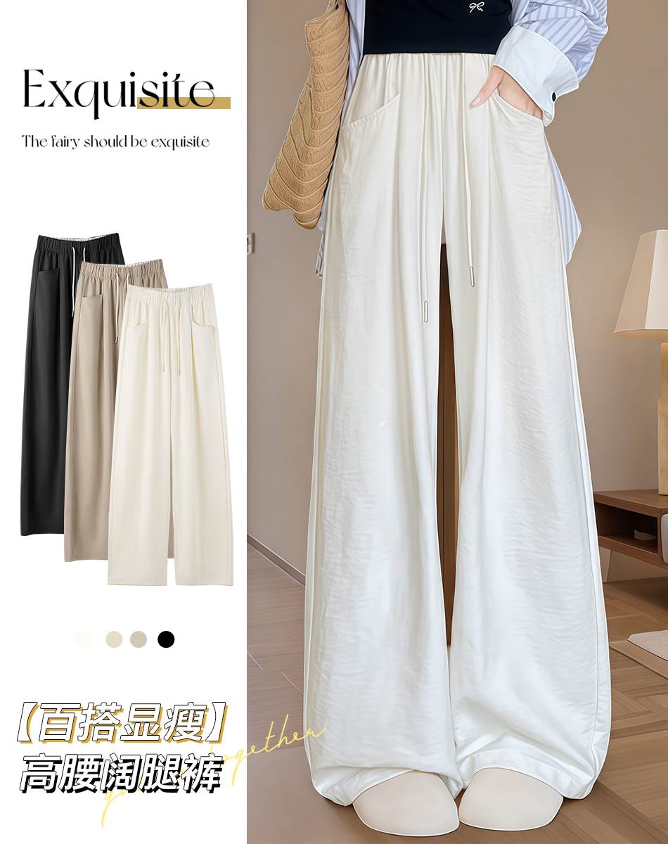 夏季新品薄款百搭显瘦口袋休闲裤长裤阔腿裤女高腰显瘦宽松藏肉Z562奶芙云朵裤